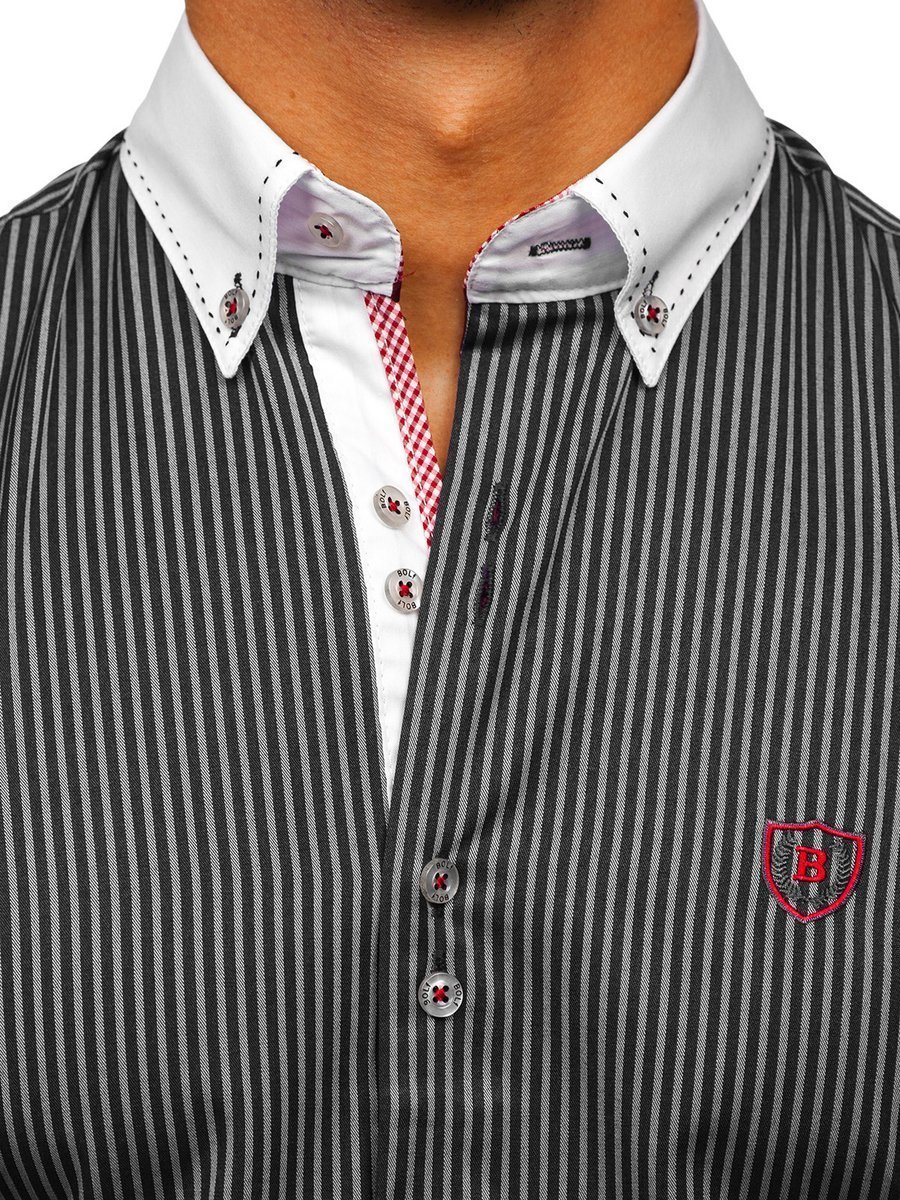 Opiniile utilizatorilor despre Cămașă în dungi bărbați neagră Bolf 9717