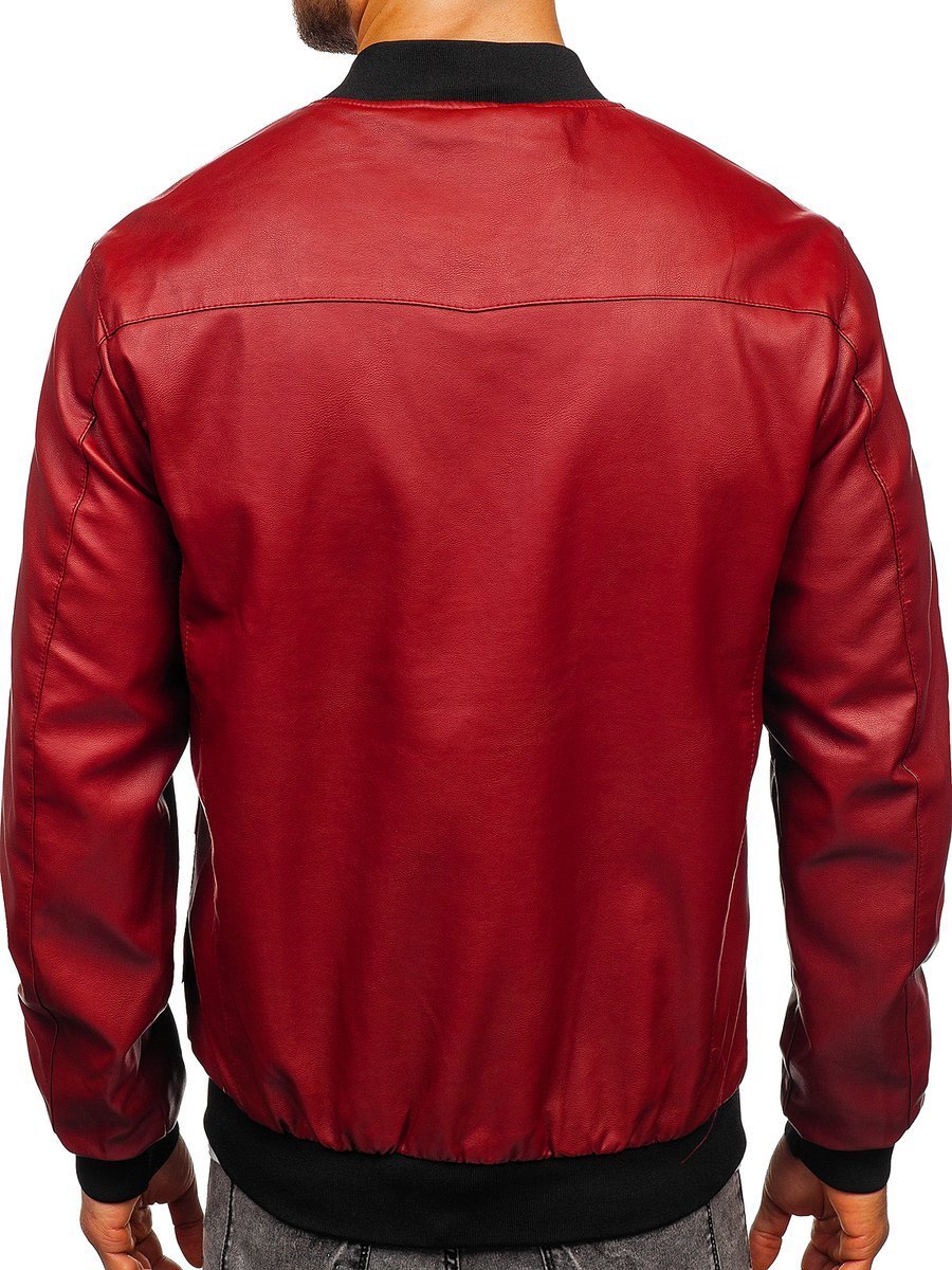Geaca bordo bomber Bolf 1147 este un model pentru bărbații ce prețuiesc stilul și sunt in trend cu moda. Geaca se va înscrie ideal in trendurile modei actuale, confectionata din piele ecologică. Se închide cu fermoar și are guler mic tunica. Mânecile, gulerul și terminatia gecii cu elastice negre. Geaca are două buzunare exterioare cu fermoar și un buzunar interior fără fermoar.Geaca este excelenta in fiecare zi, se potriveste in ținutele formale. Va fi o completare excelenta cu blugi si bluză, pantaloni chinos si camașăsau chiar jogger si Tricou.
