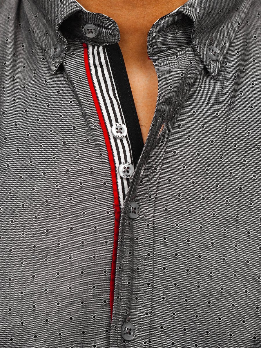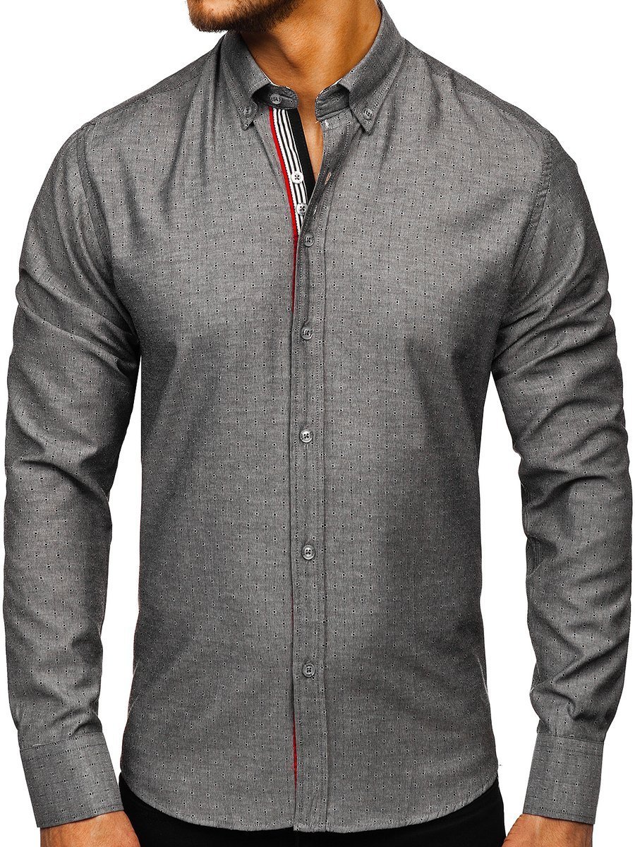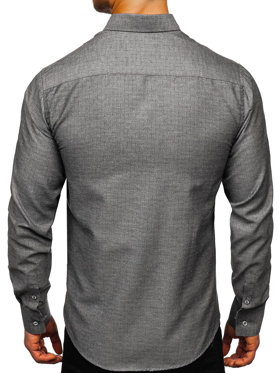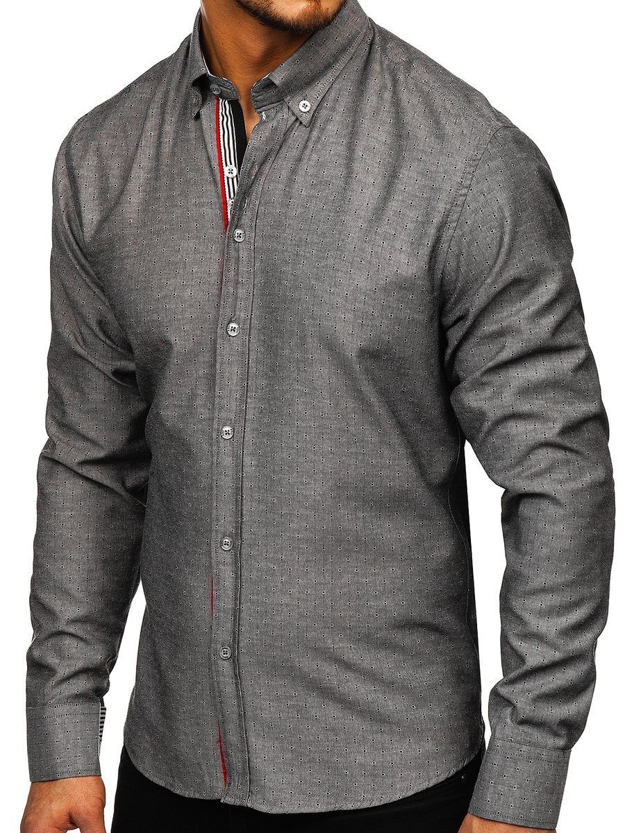 Cămăși grafit pentru bărbat Bolf imprimate în model delicat. Sunt o alegere minunată la multe ocazii. Cămașa grafit pentru bărbat este un model slim fit, are guler button down. Are închidere comodă cu nasturi. Alege-o în ținutele zilnice, casual.