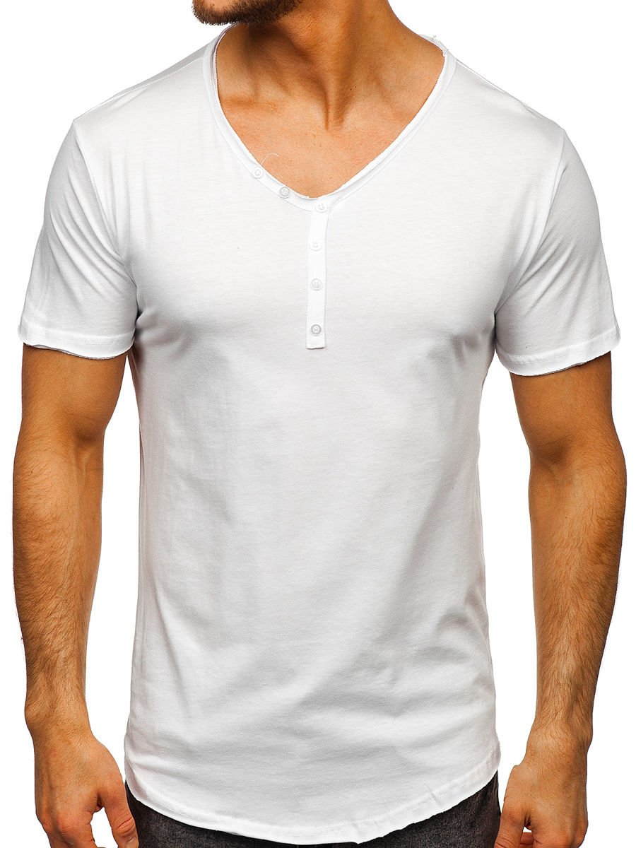 Opiniile utilizatorilor despre Tricou alb simplu din bumbac cu decolteu în V pentru bărbați Bolf 4049
