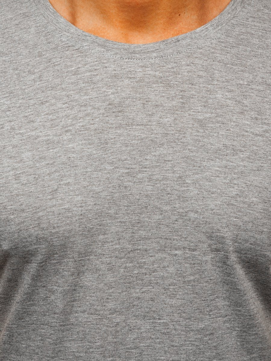 Tricoul gri-închis Bolf 2005 are croiala clasică. Acest model de tricou a fost confectionat în culori fine. Se potrivește excelent pe fiecare siluetă, se așează pe corp. Are decolteu rotunjit cu dungă subțire. Tricoul tip basic va fi o bază excelentă în multe ținute interesante