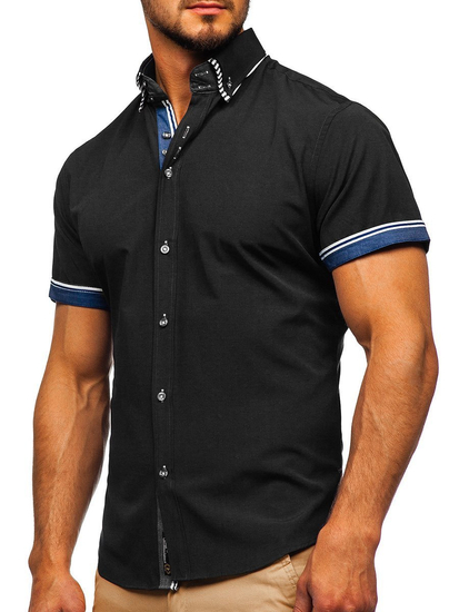 Cămăși negre cu mâneca scurtă din colecția Bolf. Ideal pentru vară, căldură, întâlnire în oraș. Cămașa neagră pentru bărbat are croiala slim fit și excelent modelează silueta. Partea de jos rotunjită, deci o poți purta deasupra pantalonilor. Combină cu pantaloni lungi sau scurți.