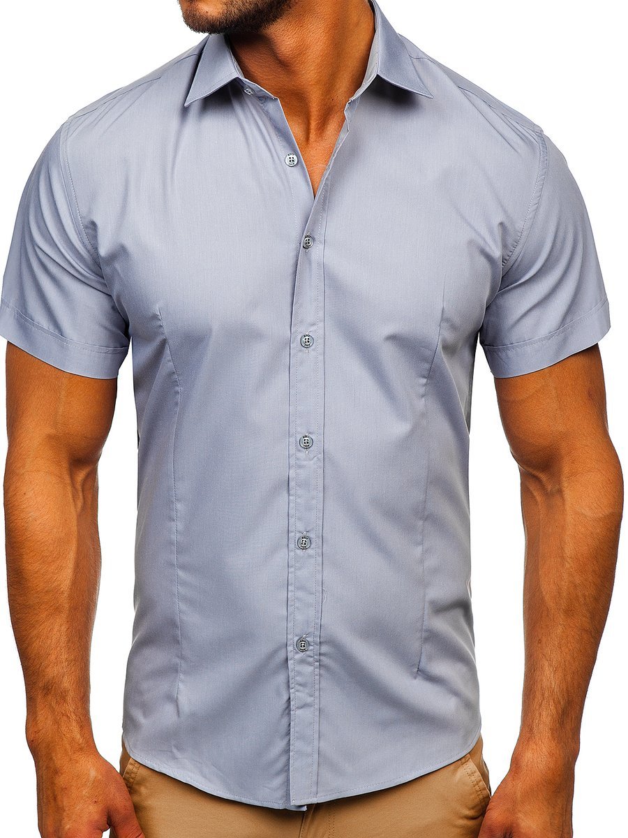 Opiniile utilizatorilor despre Cămașă gri mâneca scurtă bărbați Bolf 7501