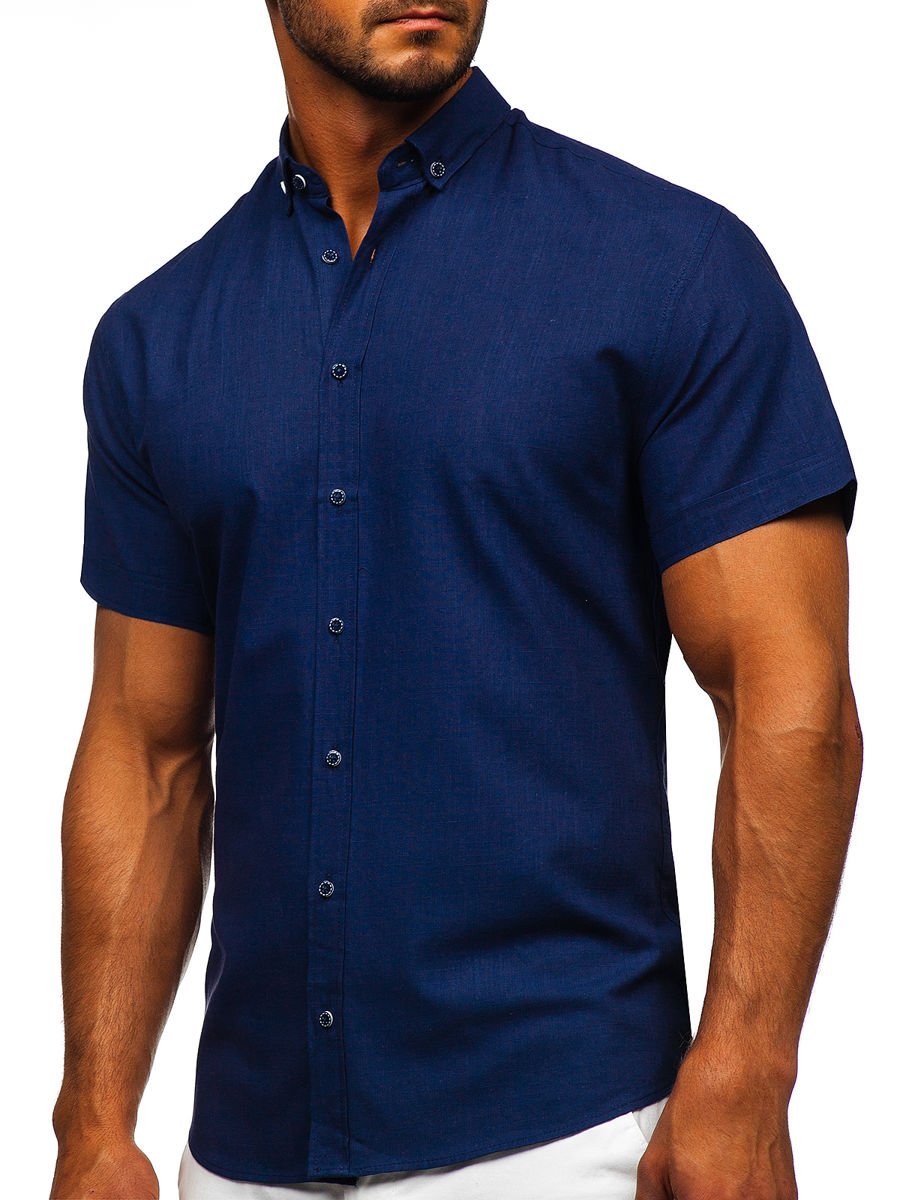 Opiniile utilizatorilor despre Cămașă bleumarin mâneca scurtă bărbați Bolf 20501