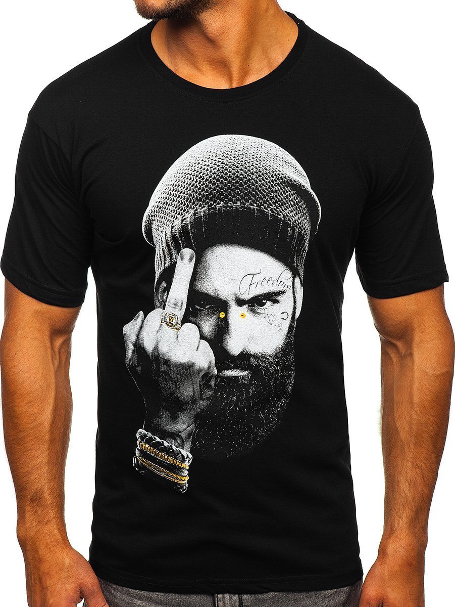 Opiniile utilizatorilor despre Tricou negru cu imprimeu bărbați Bolf 142175