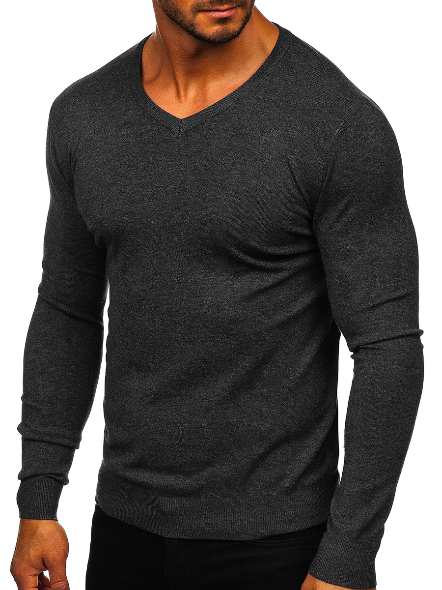 Puloverul bărbătesc Bolf YY03 graphite cu decolteu în V, cu o croială simplă și clasică. Are decolteu delicat finisat cu elastic. Mânecile la fel au fost finisate cu elastic, datorită acestui lucru se va așeza excelent pe fiecare siluetă. Confecționat din material moale plăcut la atingere, se așează excelent pe siluetă. Material 32% acril, 27% poliester, 23% nylon și 18% vascoză. Acest produs a fost confecționat în diverse variante coloristice se va combina în mai multe ținute. Poartă la școală, serviciu– datorită acestui lucru il poți combina în diverse ținute. Puloverul clasic arată excelent cu blugi și geacă de piele, creează un outfit ideal in oraș. Poți combina cu joggers și bluză, creează o ținută relaxată.
