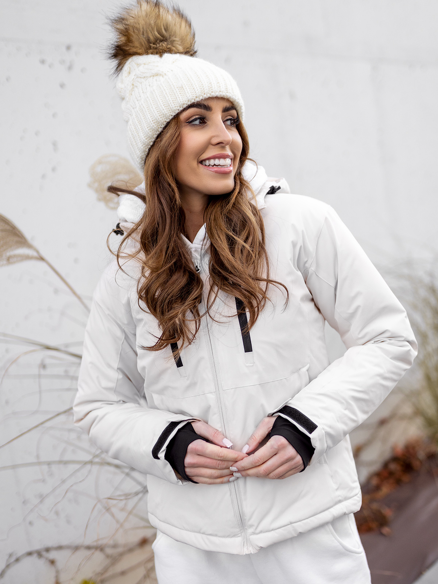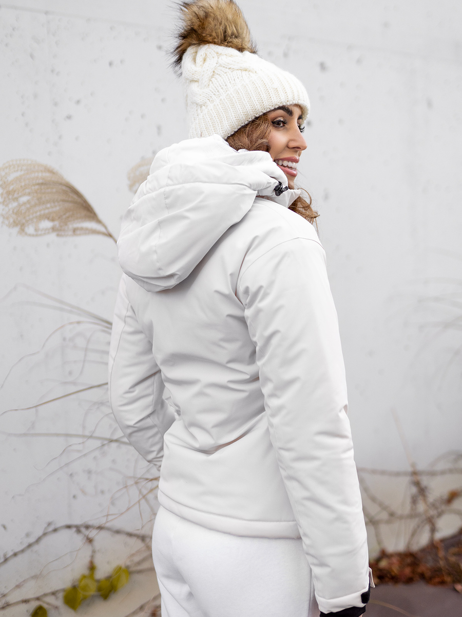 Geacă de iarnă albă dame Bolf HH012 este geacă călduroasă tip sport. Este călduroasă și practică, suplimentar arată excelent confecționată în culori frumoase. Cu siguranță va fi pe placul femeilor care sunt in pas cu moda. Închiderea cu fermoar. Are glugă detașabilă reglabilă. Geaca este netedă confecționată din material călduros. Are guler inalt cu inchidere la fermoar tip tunică, protejează de vânt și frig. Geaca are două buzunare cu inchidere la nasturi, două la piept cu fermoar și unul suplimentar la mâneca stângă. De asemenea are fermoar practic cu fermoar in care poți depozita telefonul sau protofelul. Mânecile reglabile cu nasturi din interior finisare cu elastic Geaca este izolată termic, datorită acestui lucru se potrivește in cele mai reci zile.