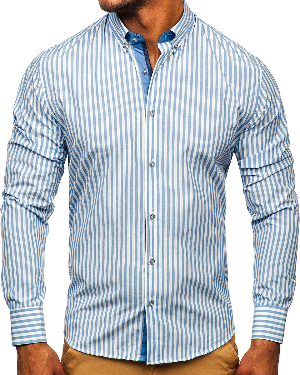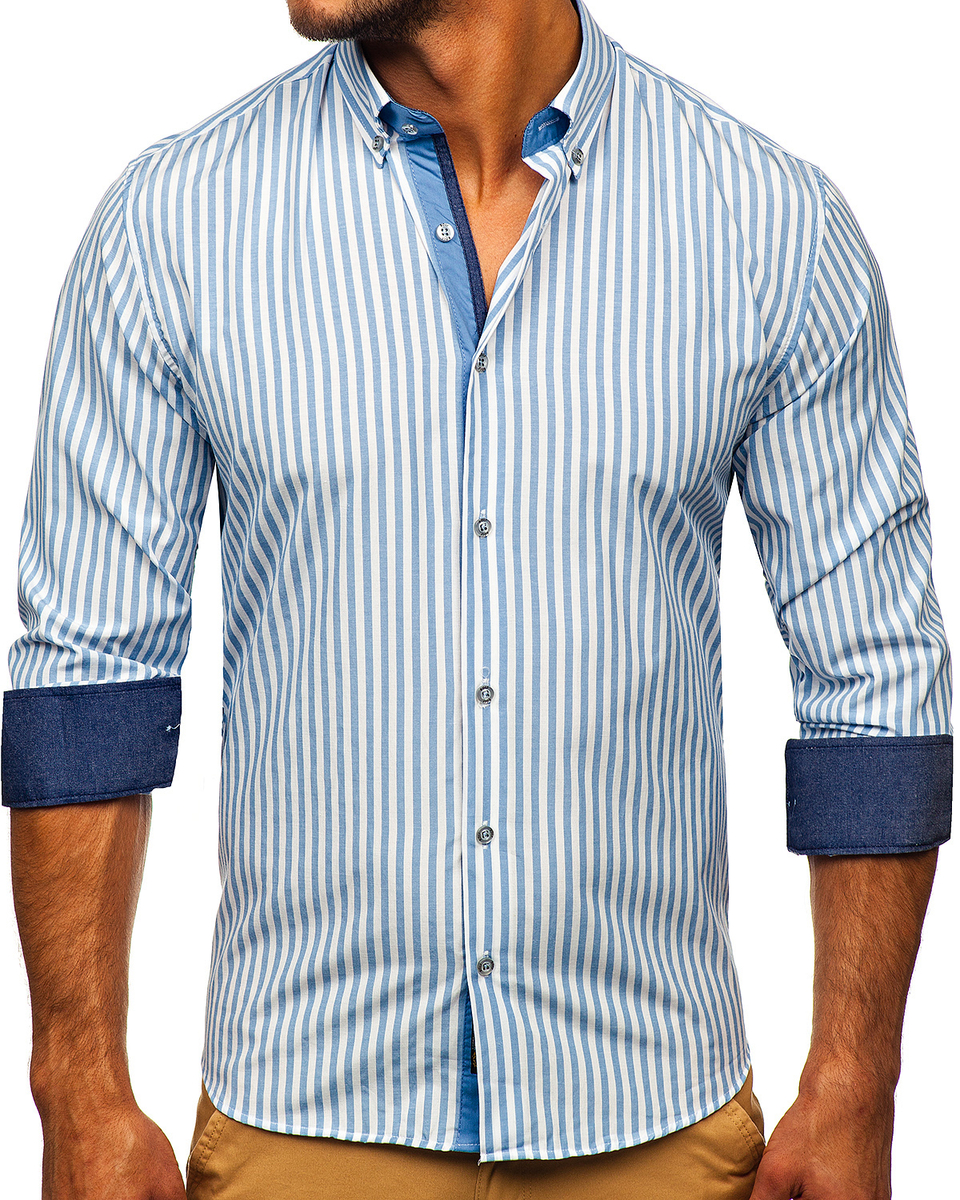 Opiniile utilizatorilor despre Cămașă în dungi mâneca lungă bleumarin Bolf 20704