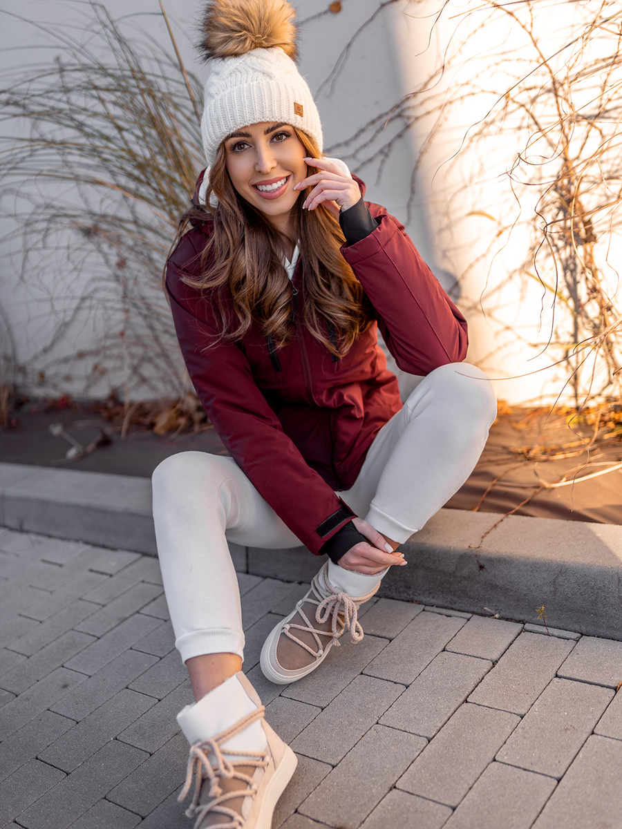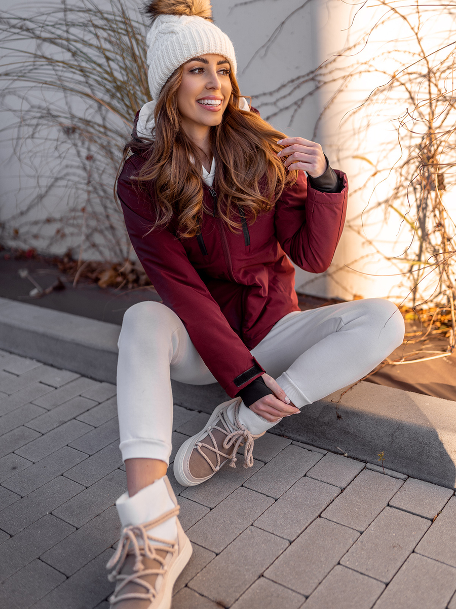 Geacă de iarnă bordo dame Bolf HH012 este geacă călduroasă tip sport. Este călduroasă și practică, suplimentar arată excelent confecționată în culori frumoase. Cu siguranță va fi pe placul femeilor care sunt in pas cu moda. Închiderea cu fermoar. Are glugă detașabilă reglabilă. Geaca este netedă confecționată din material călduros. Are guler inalt cu inchidere la fermoar tip tunică, protejează de vânt și frig. Geaca are două buzunare cu inchidere la nasturi, două la piept cu fermoar și unul suplimentar la mâneca stângă. De asemenea are fermoar practic cu fermoar in care poți depozita telefonul sau protofelul. Mânecile reglabile cu nasturi din interior finisare cu elastic Geaca este izolată termic, datorită acestui lucru se potrivește in cele mai reci zile.
