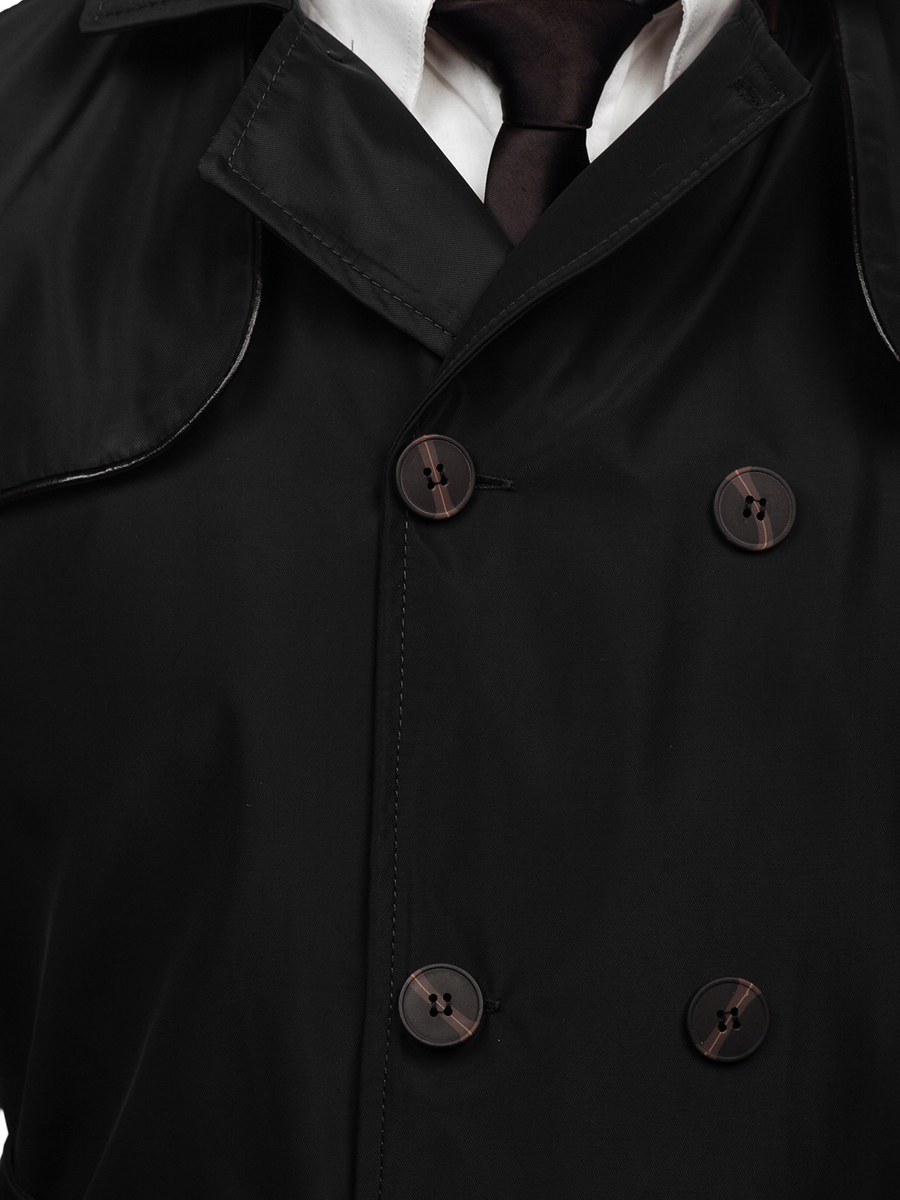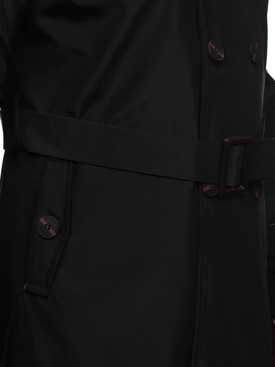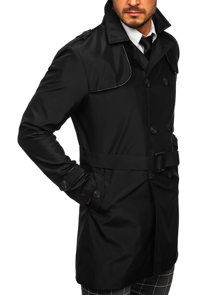 Palton negru cu guler inalt este alegerea bărbaților care prețuiesc eleganța clasică. Paltonul in două rânduri de nasturi trebuie să fie in garderoba fiecărui bărbat Produsul are inchidere cu nasturi comozi si curea in set care se așează excelent pe siluetă. Guler tip revers are inchidere cu nasture. Un element practic al paltonului sunt buzunarele fără inchidere. Buzunarele au nasture decortiv. Un alt element funcțional este buzunarul interior unde poți păstra diverse articole. Produsul are de asemenea nasturi decorativi la finisare mânecilor.