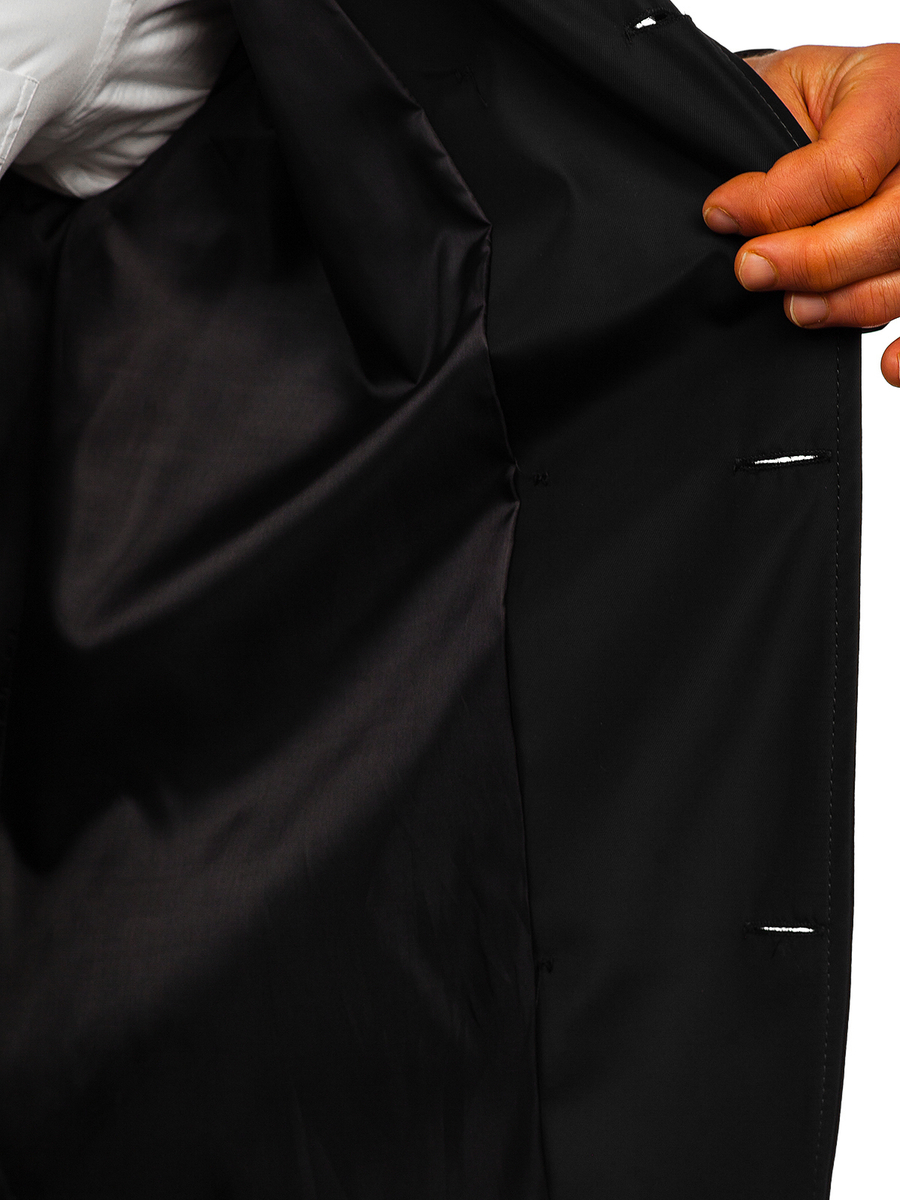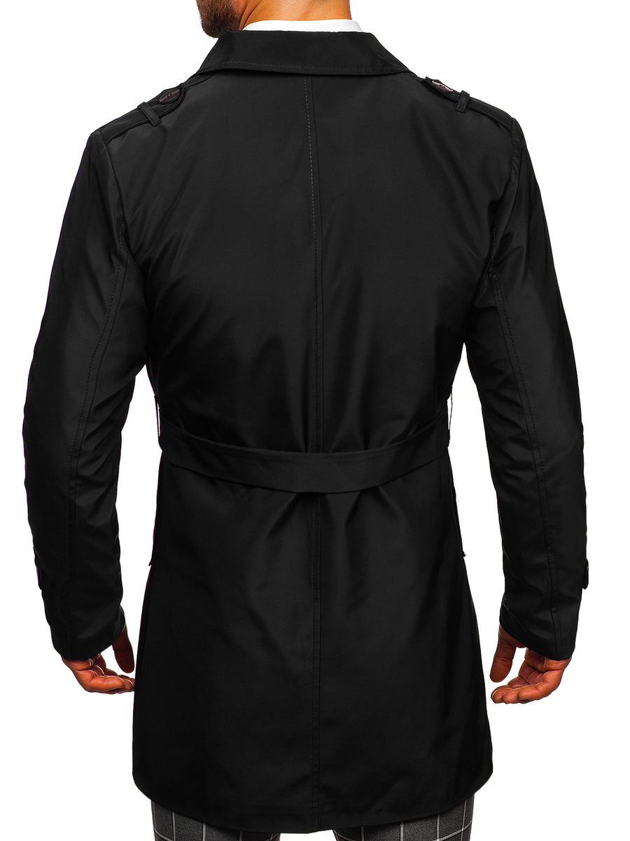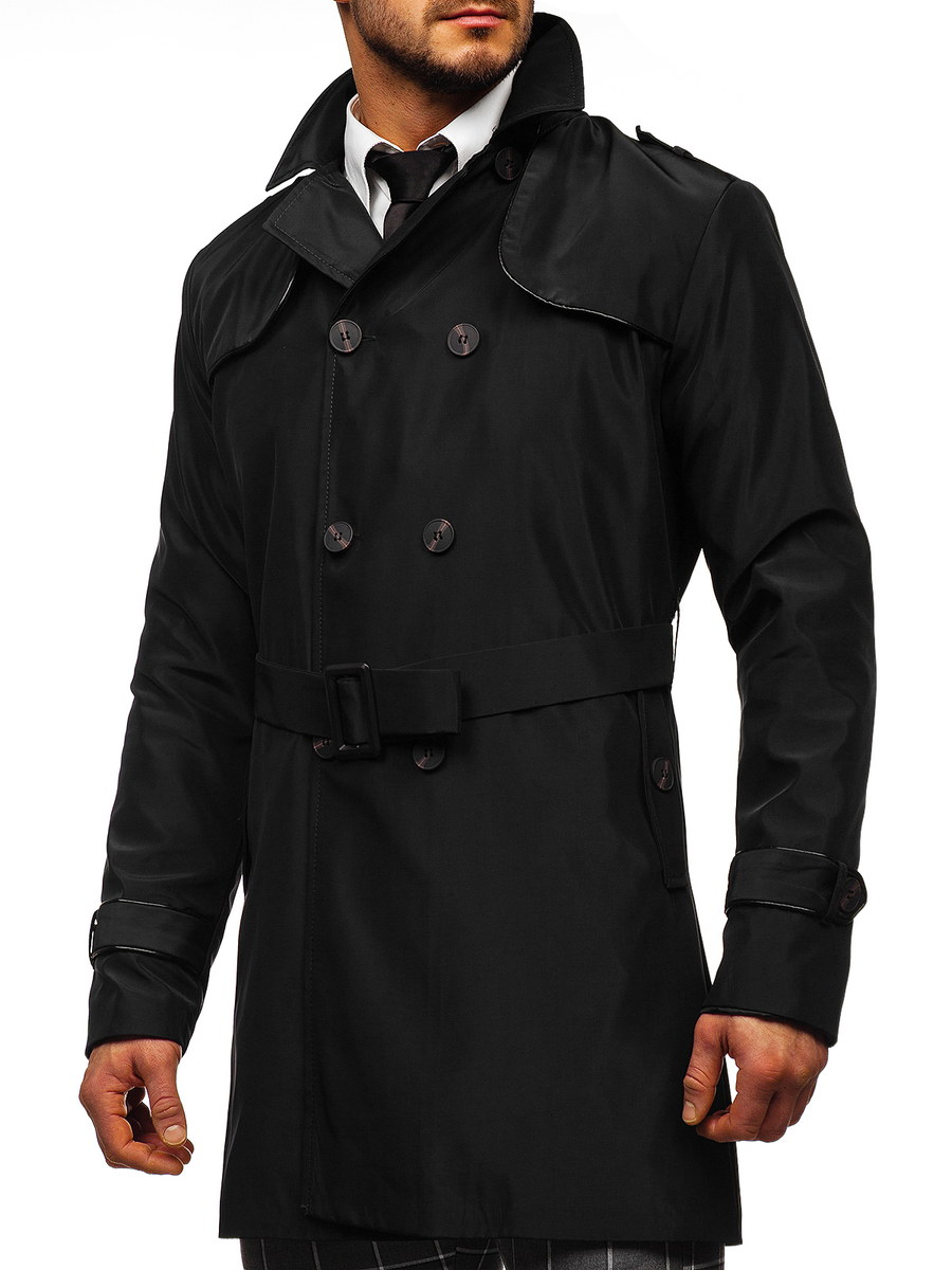 Palton negru cu guler inalt este alegerea bărbaților care prețuiesc eleganța clasică. Paltonul in două rânduri de nasturi trebuie să fie in garderoba fiecărui bărbat Produsul are inchidere cu nasturi comozi si curea in set care se așează excelent pe siluetă. Guler tip revers are inchidere cu nasture. Un element practic al paltonului sunt buzunarele fără inchidere. Buzunarele au nasture decortiv. Un alt element funcțional este buzunarul interior unde poți păstra diverse articole. Produsul are de asemenea nasturi decorativi la finisare mânecilor.