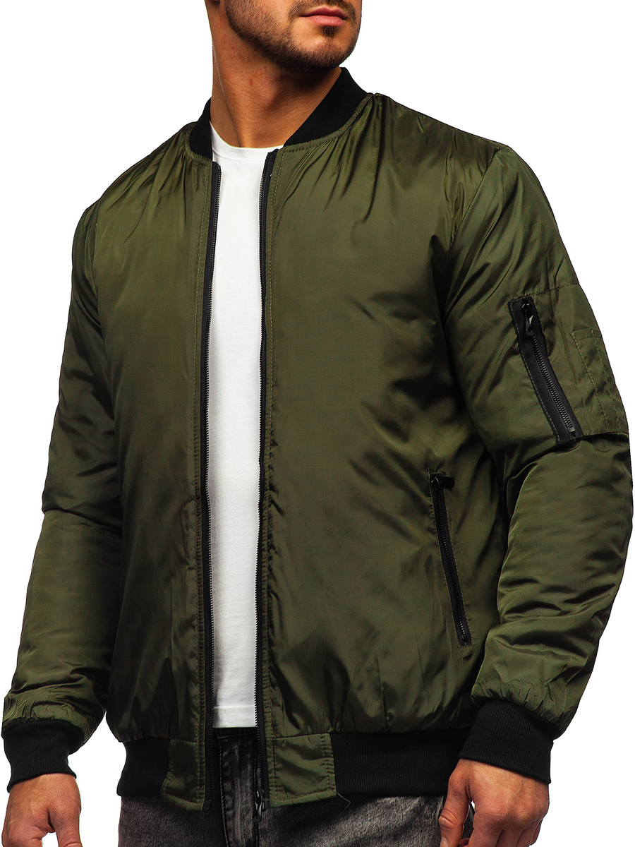 Geci verzi de tranziție bomber Bolf. Au buzunar excelent la mânecă, elastice contrastante, se așează ideal pe fiecare siluetă. Geaca verde de tranziție se potrivește excelent în stilizările street. Poartă cu jeanși, joggers, bluză.