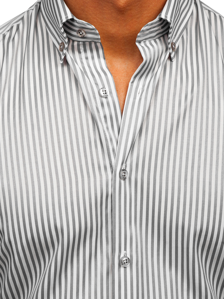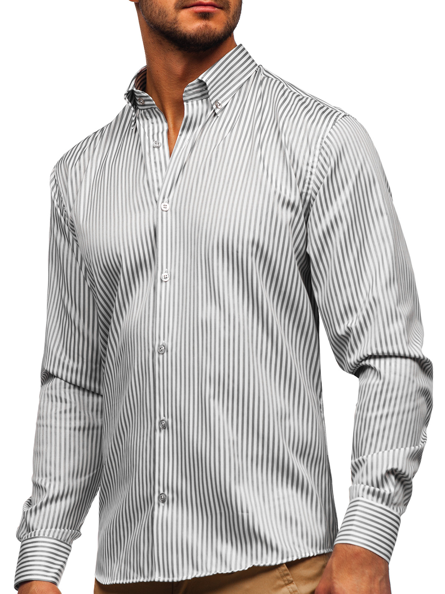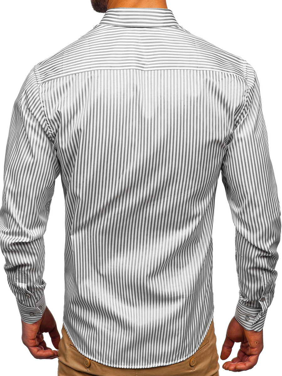 Opiniile utilizatorilor despre Cămașă gri în dungi cu mâneca lungă Bolf 20726