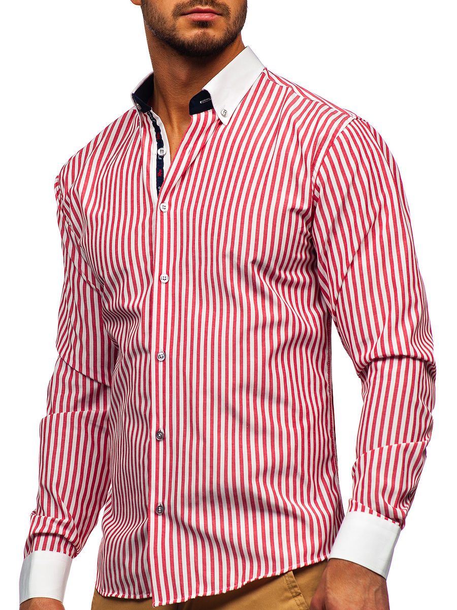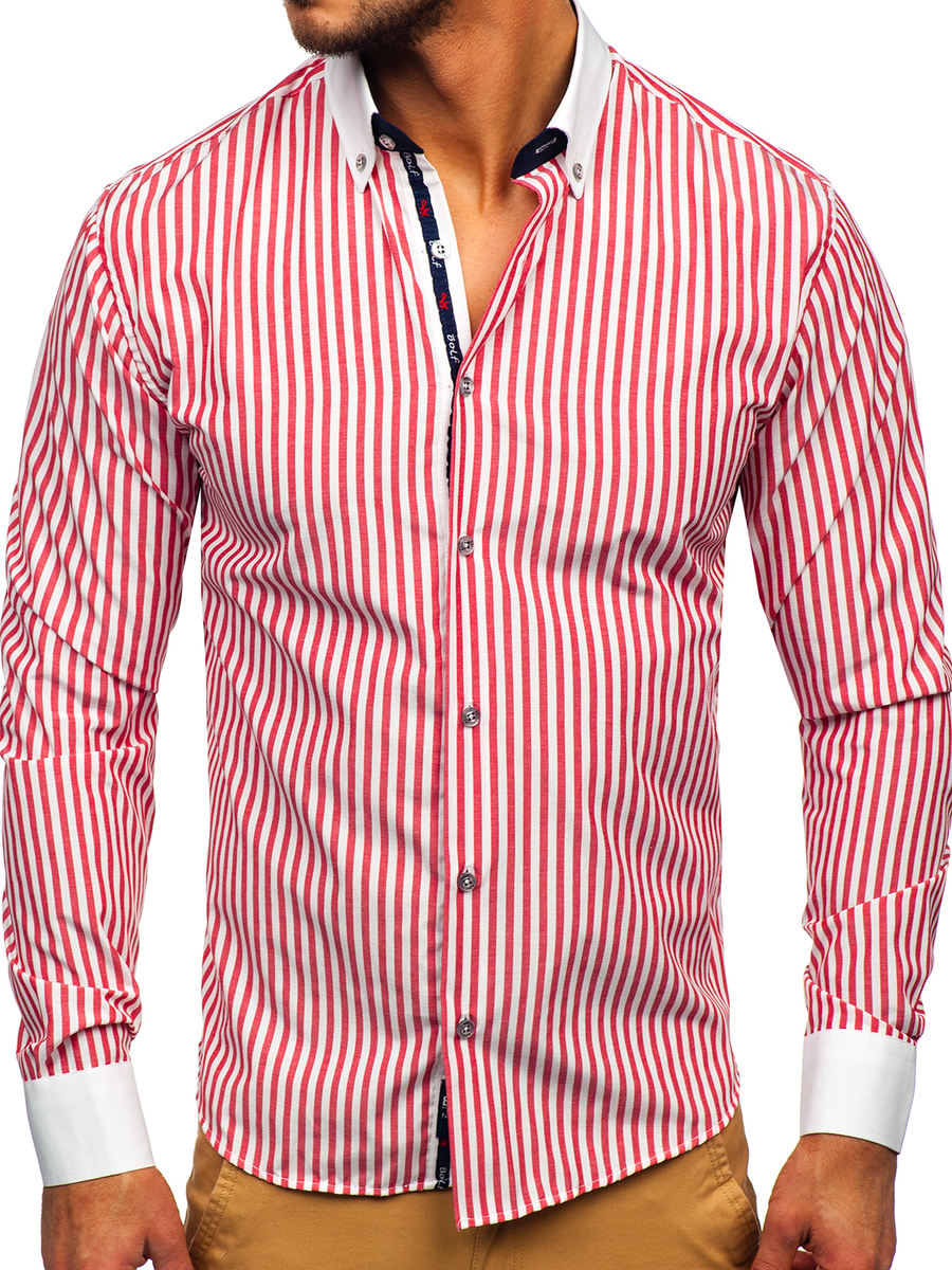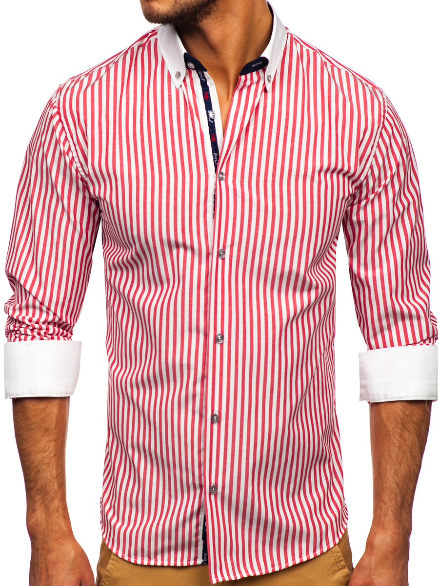 Opiniile utilizatorilor despre Cămașă roșie în dungi cu mâneca lungă Bolf 20727