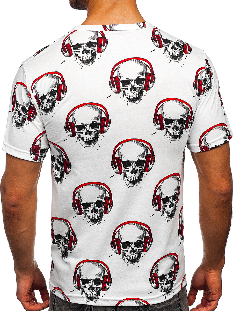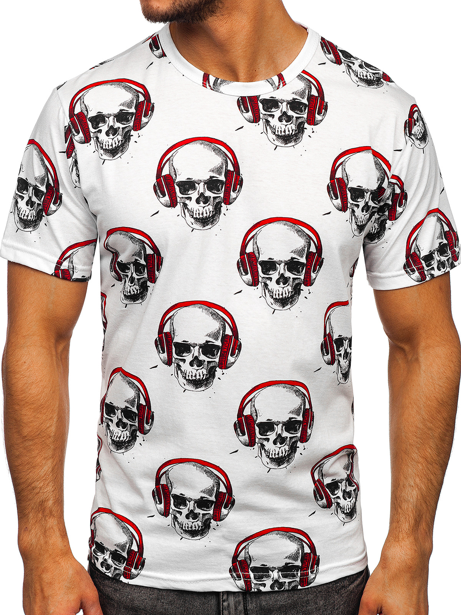 Tricoul cu imprimeu pentru bărbați Bolf 14919 va arăta fantastic cu ținutele urbane. Confecționați din 100% bumbac. Este placut la atingere, flexibil si confortabil. Are un decolteu rotund și subliniază perfect silueta. Imprimeul stilat pe toată suprafața îi conferă un caracter la modă, ușor rock. Tricoul va fi potrivit pentru iesiri cu prietenii, un concert sau o excursie in oras. Combină cu geacă de piele și pantaloni joggers.
