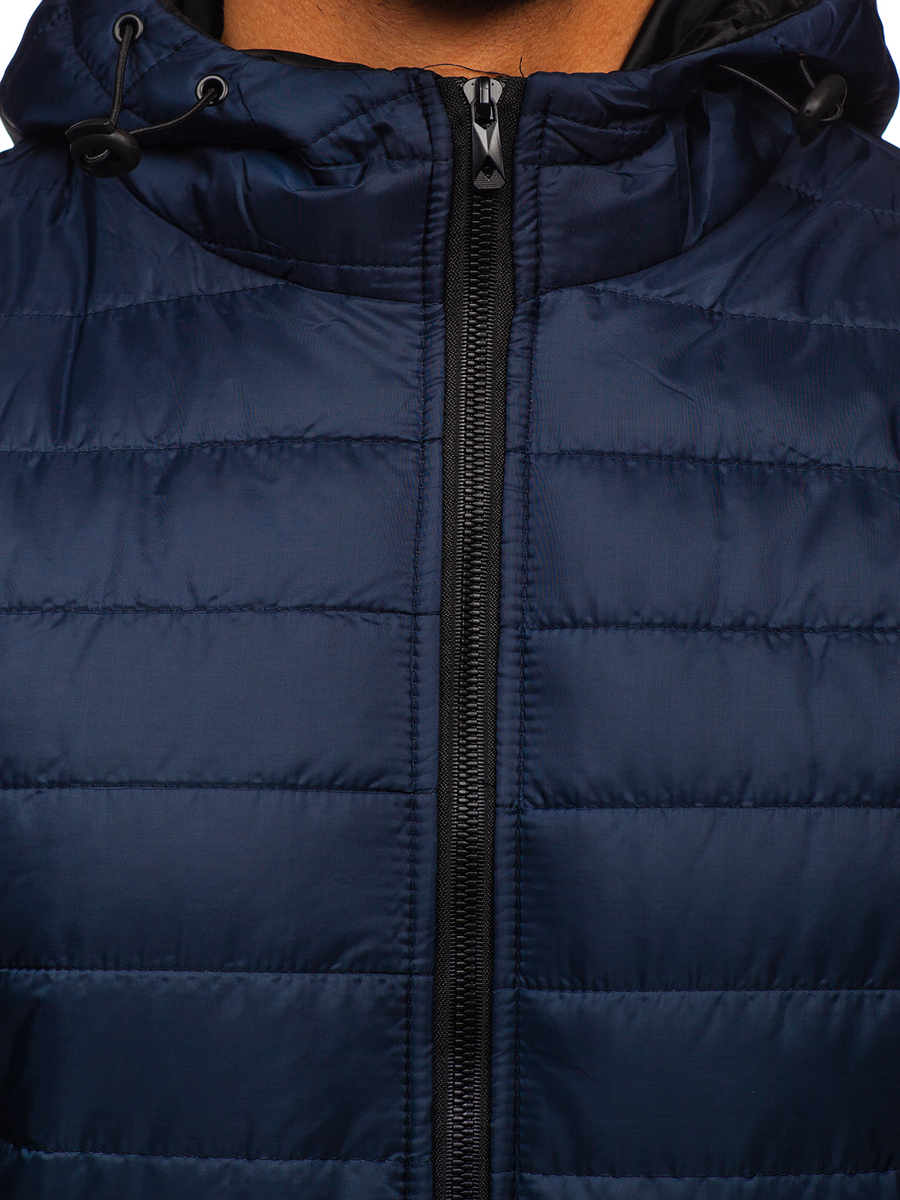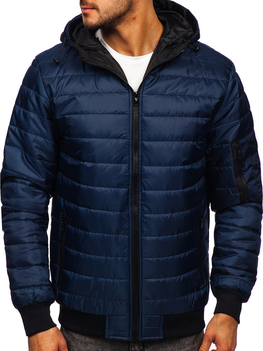 Geci sport Bolf, ideale în fiecare zi cu glugă și matlasare orizontală. De culoare bleumarin, sunt ușoare, au glugă reglabilă și buzunare cu închidere la fermoar. Geaca bluemarin de tranziție arată genial în combinare cu haine sportive. Poartă de asemenea în fiecare zi și combină cu bluza preferată și blugi.
