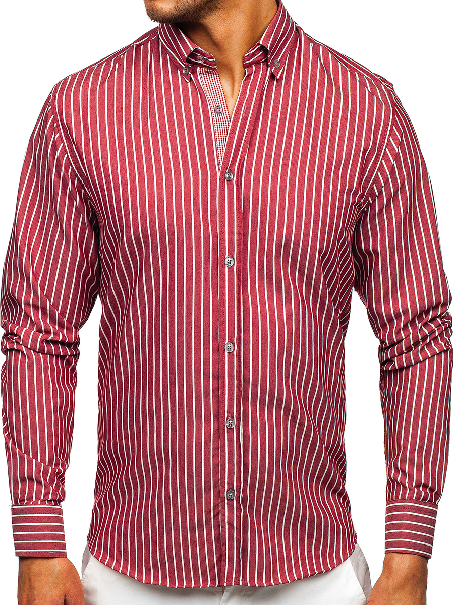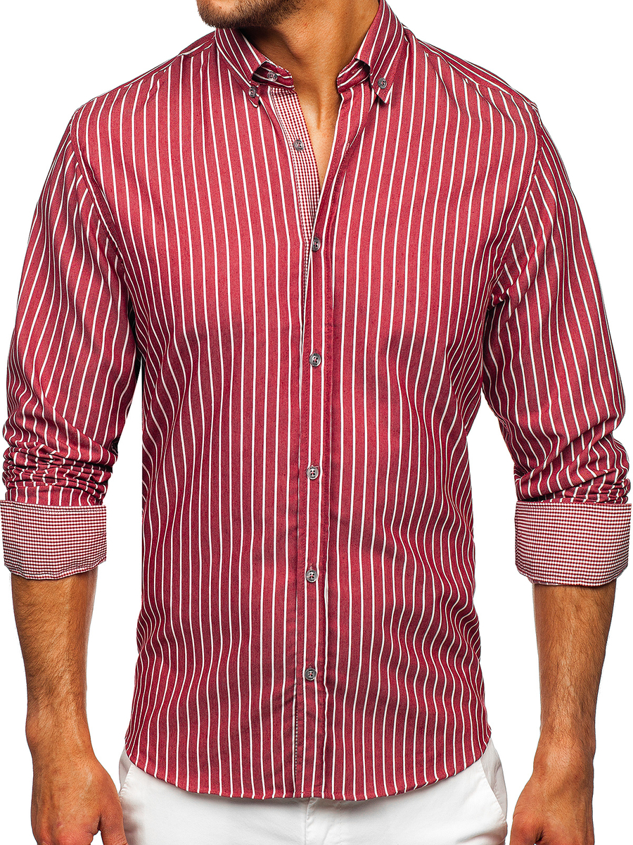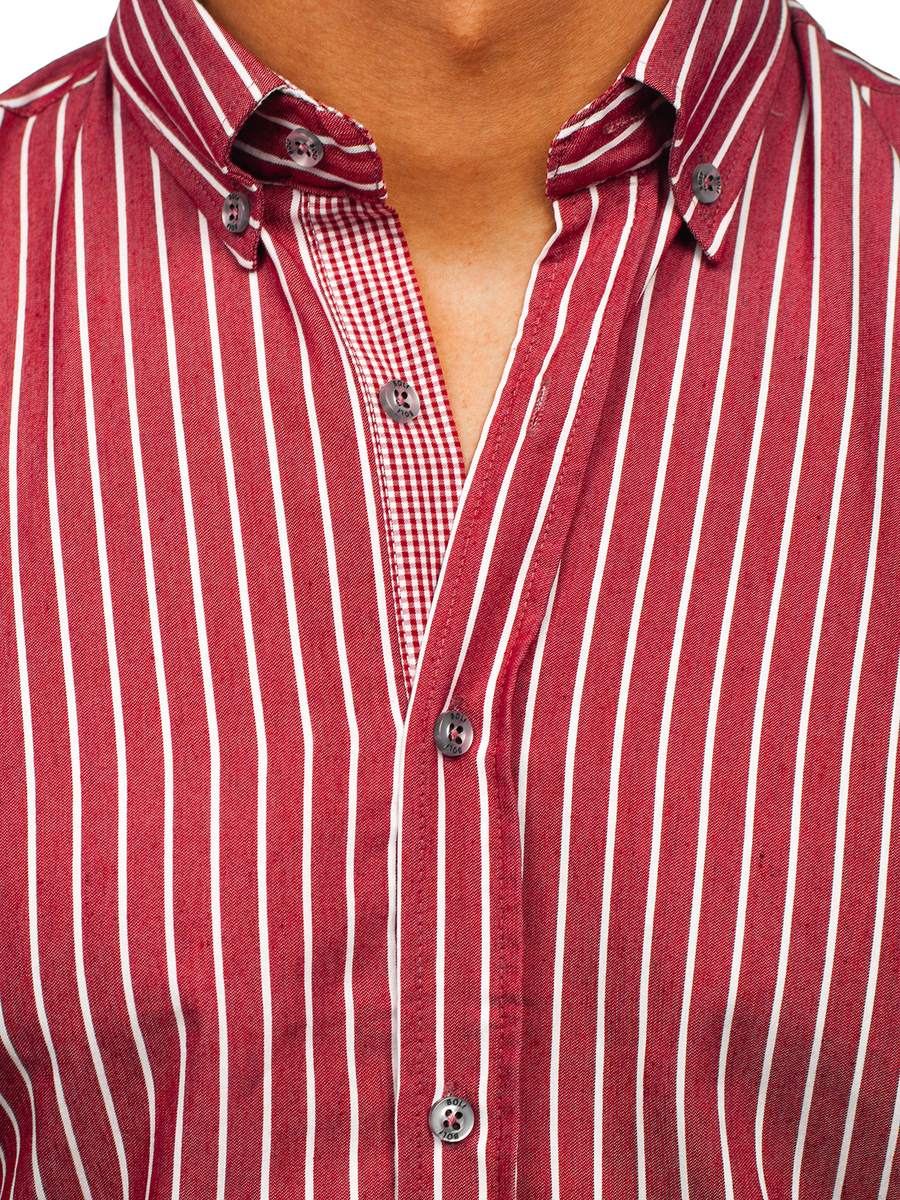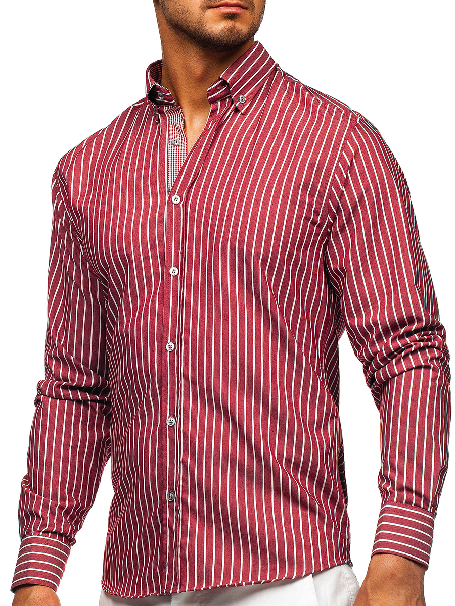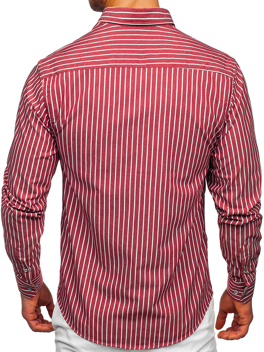 Opiniile utilizatorilor despre Cămașă bordo în dungi mâneca lungă Bolf 20731