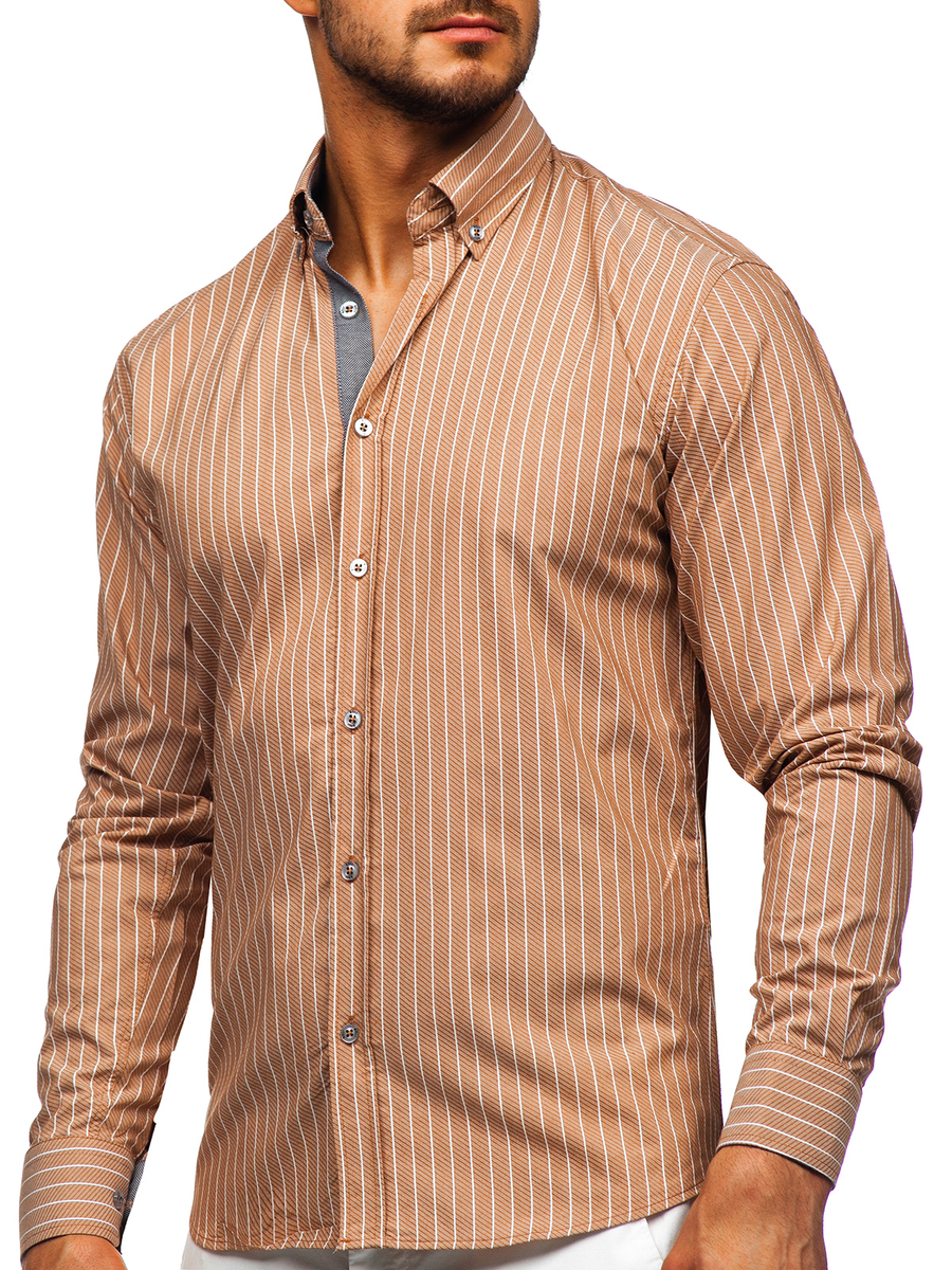 Opiniile utilizatorilor despre Cămașă maro în dungi mâneca lungă Bolf 20731-1