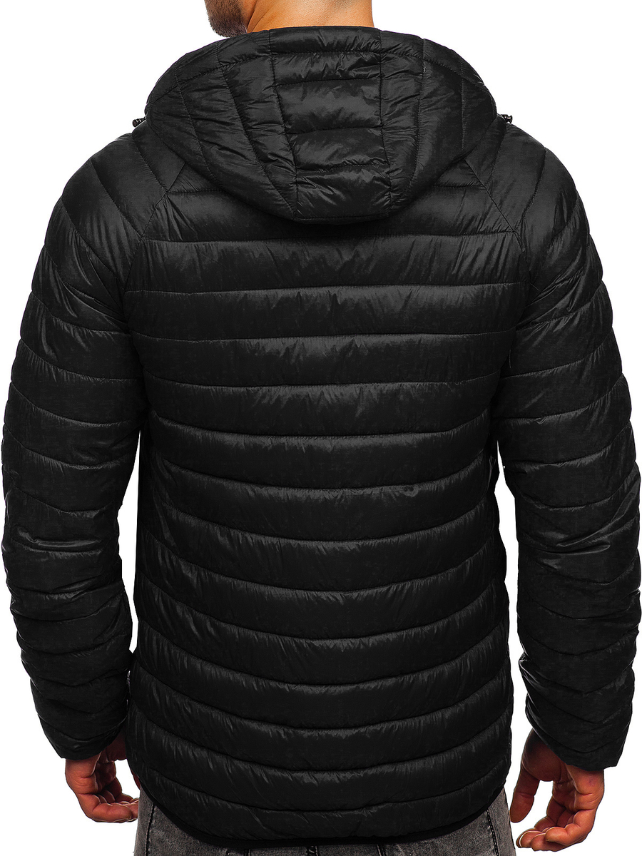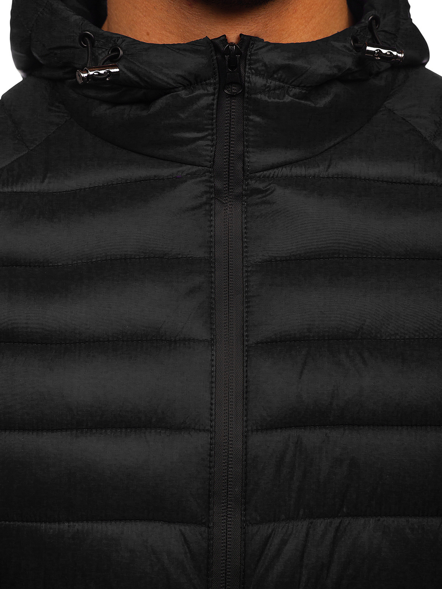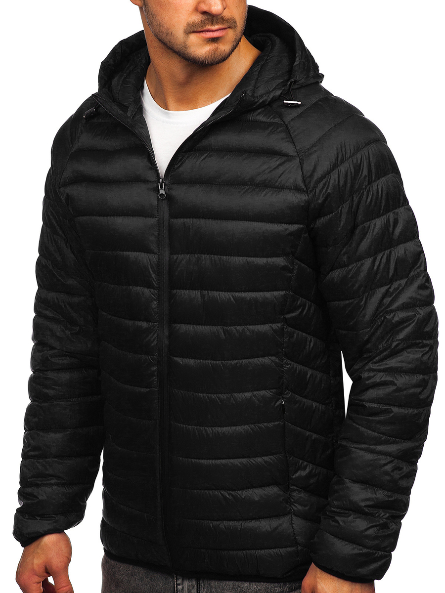 Geacă neagră matlasată Bolf 13021 se va potrivi excelent în ținutele sport. Geacă comodă și practică must have în garderoba fiecărui bărbat. Poți purta la training sau plimbare. Se închide cu fermoar. Are glugă reglabilă și detașabilă care protejează de ploaie și frig. Două buzunare cu inchidere la fermoar practic. Terminația și mânecile cu dungă elastică. Geaca este confecționată din 100% nylon de aia este elastică. Va arăta excelent în combinare cu blugi sau joggers.