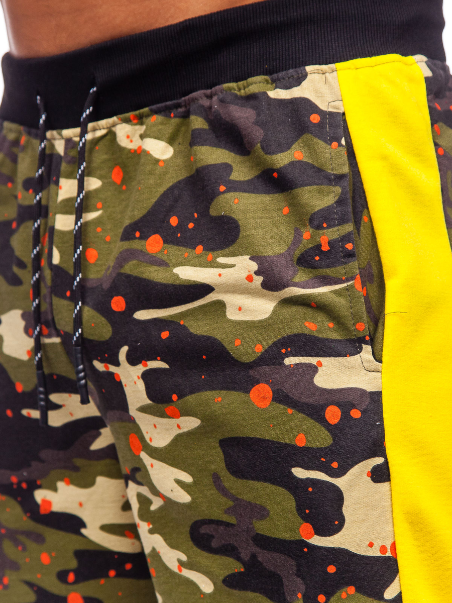 Pantalonii scurți verzi de training Bolf KS2579 sunt alegerea perfectă pentru lunile de vară. Produsul este imprimat în model army, de aceea poți combina în ținute deschise cât și mai inchise. Datorită reglării în talie cu elastic puternic și șnur se așează pe fiecare siluetă. Un element practic sunt două buzunare pe laterală. Pantalonii scurți pot fi imbrăcați la sală, jogging sau plimbare. Confecționați din poliester ce conferă elasticitate. Creează un perfect match impreuna cu Tricou sau tank top.