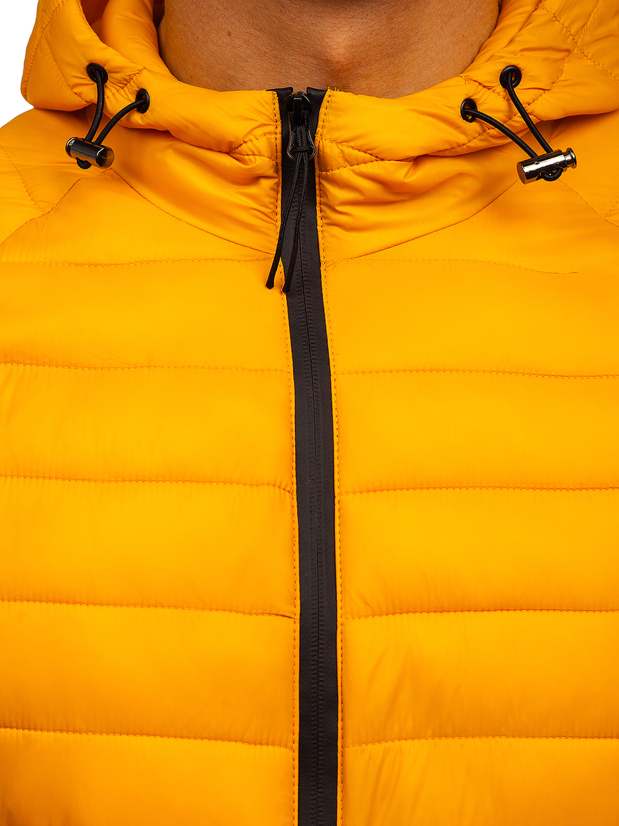 Geacă galbenă matlasată Bolf 13021 se va potrivi excelent în ținutele sport. Geacă comodă și practică must have în garderoba fiecărui bărbat. Poți purta la training sau plimbare. Se închide cu fermoar. Are glugă reglabilă și detașabilă care protejează de ploaie și frig. Două buzunare cu inchidere la fermoar practic. Terminația și mânecile cu dungă elastică. Geaca este confecționată din 100% nylon de aia este elastică. Va arăta excelent în combinare cu blugi sau joggers.