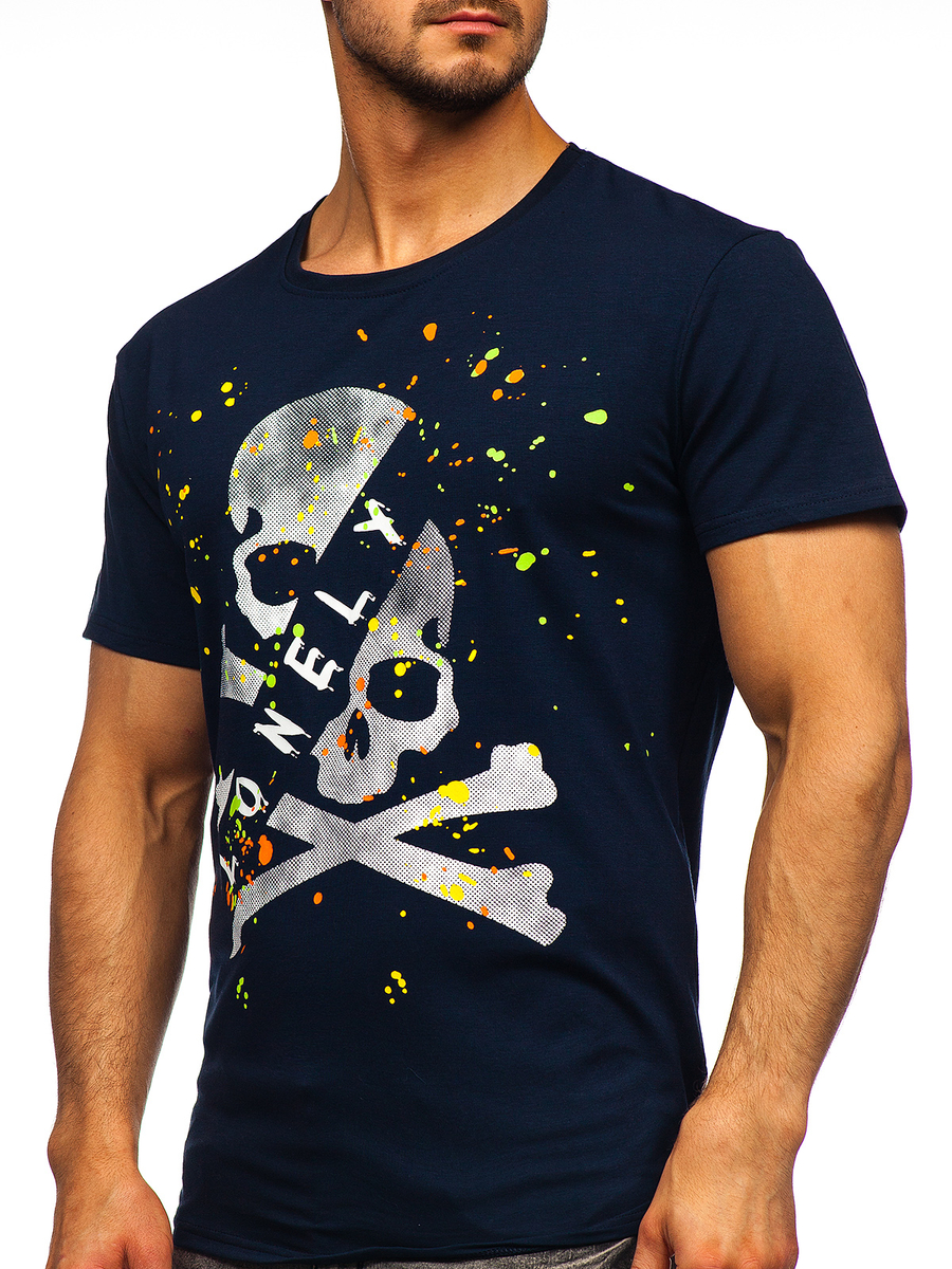 Opiniile utilizatorilor despre Tricou bărbați bleumarin cu imprimeu Bolf Y70008