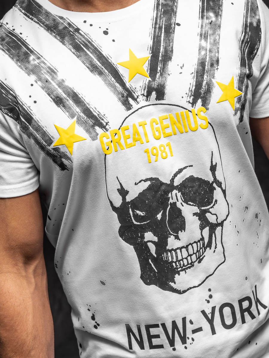 Tricou alb cu imprimeu Y70006 to must have pentru cei ce pretuiesc confortul . Tricoul comod cu decolteu va fi la sigur pe placut Tău. Produsul se va potrivi la iesirile in oras sau intalnirile cu prietenii. În partea frontală se regăseste imprimeu original care capteaza atenția. Tricoul a fost confecționat din material plăcut la atingere. Creează un perfect match cu blugi, joggers, pantaloni cargo sau pantaloni chinos.
