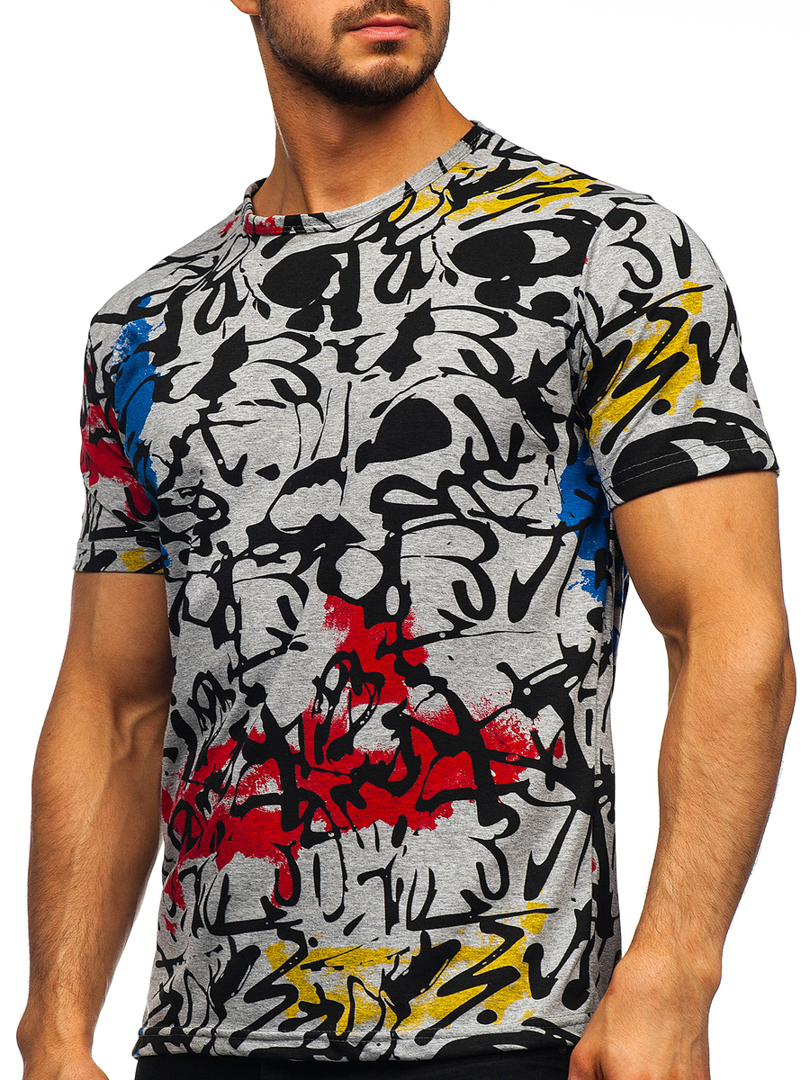 Tricoul gri cu imprimeu Bolf 14901 va arăta excelent in ținutele urbane sau la plimbări si intâlnirile cu prietenii. Designul orginale va fi pe placul tău te vei evidenția din multime. Produsul are decolteu rotunjit si confectionat din 100% bumbac ce conferă ca este elastic. Produsul este destinat pentru cei care preferă stilul urban. Va arăta excelent in combinare cu joggers si blugi.
