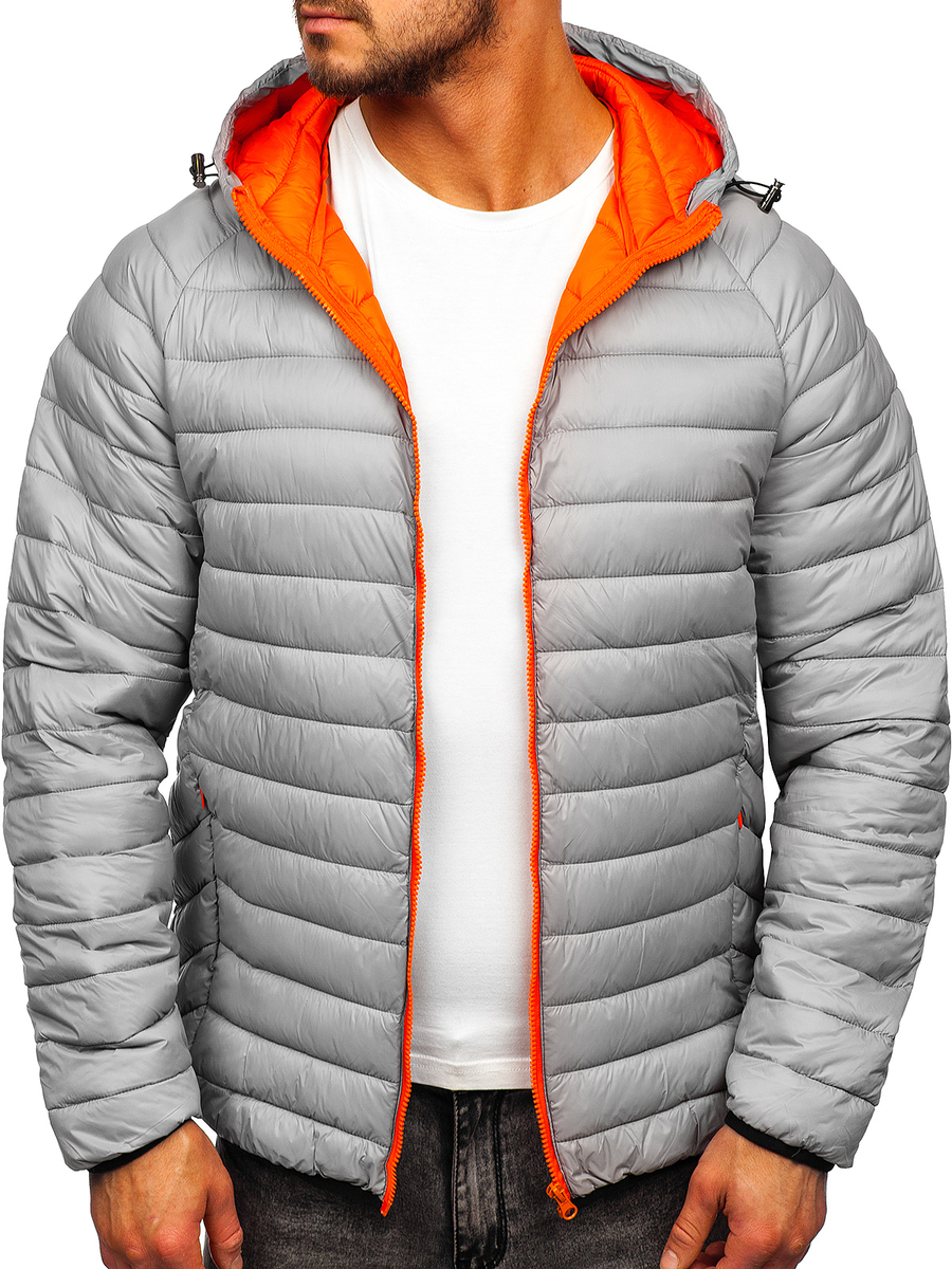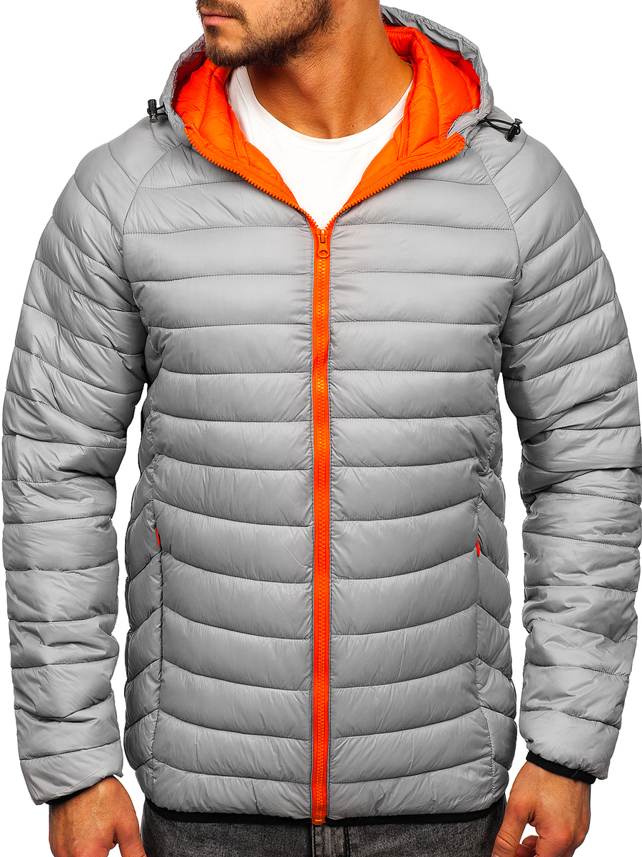 Geacă gri cu glugă 13022 se potriveste excelent in sezonul toamna-primăvara. Se poate imbraca practic la fiecare ocazie. Comdă, matlasata cu inchidere la fermoar, geaca va fi pe placul fiecarui. Un element practic sunt două buzunare interioare si doua interioare . Mânecile si terminatia cu dunga elastica. Materialul nylon asigura elasticitate. Produsul se poate combina cu blugi, joggers sau pantaloni de training.