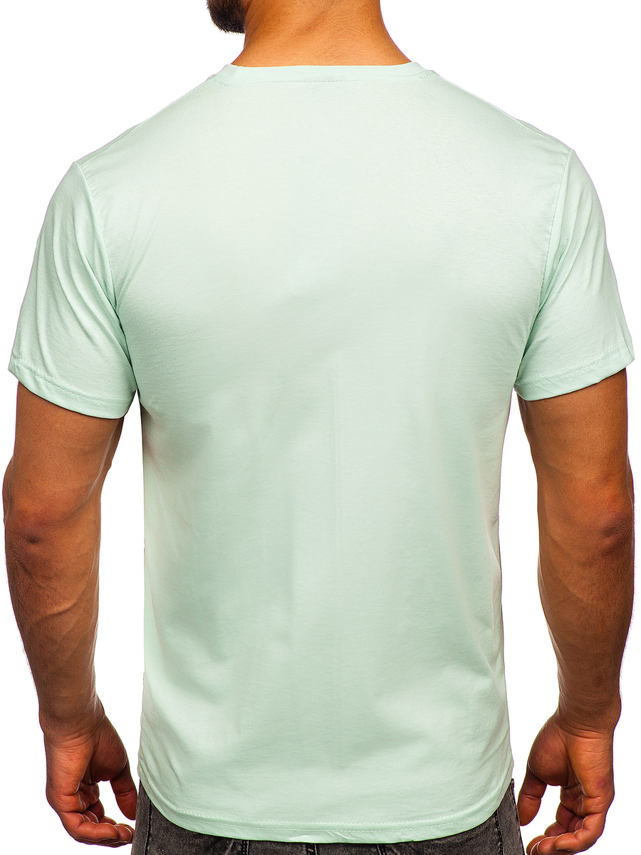 Tricou simplu bărbătesc, culoare mentă deschisă, Bolf 192397, croială clasică. Acest model este disponibil în mai multe variante de culoare, astfel încât fiecare poate alege ceva pentru sine. Datorită unei varietăți atât de mari de culori, îl puteți asorta la absolut orice stil. Un tricou cu croiala complet drept cu decolteu rotund se adapteaza oricarei siluete. Tricoul este extrem de confortabil si placut la atingere. Acesta este un produs de calitate superioara, realizat din bumbac 100%. În acest model te vei simți foarte confortabil în orice situație: purtându-l în fiecare zi și în timpul serilor cu prietenii. Acesta este un produs care este necesar în garderoba oricărui bărbat. Asociați-l cupantalonii scurțisau blugi. De asemenea, se va potrivi perfect cu joggerii și hanoracul cu fermoar.