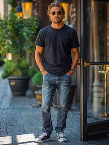 Tricou bărbătesc negru, simplu, Bolf 192397, cu croială clasică. Acest model este disponibil în mai multe variante de culoare, astfel încât fiecare poate alege ceva pentru sine. Datorită unei varietăți atât de mari de culori, îl puteți asorta la absolut orice stil. Un tricou cu croiala complet drept cu decolteu rotund se adapteaza oricarei siluete. Tricoul este extrem de confortabil si placut la atingere. Acesta este un produs de calitate superioara, realizat din bumbac 100%. În acest model te vei simți foarte confortabil în orice situație: purtându-l în fiecare zi și în timpul serilor cu prietenii. Acesta este un produs care este necesar în garderoba oricărui bărbat. Asociați-l cu pantalonii scurți sau blugi. De asemenea, se va potrivi perfect cu joggerii și hanoracul cu fermoar.