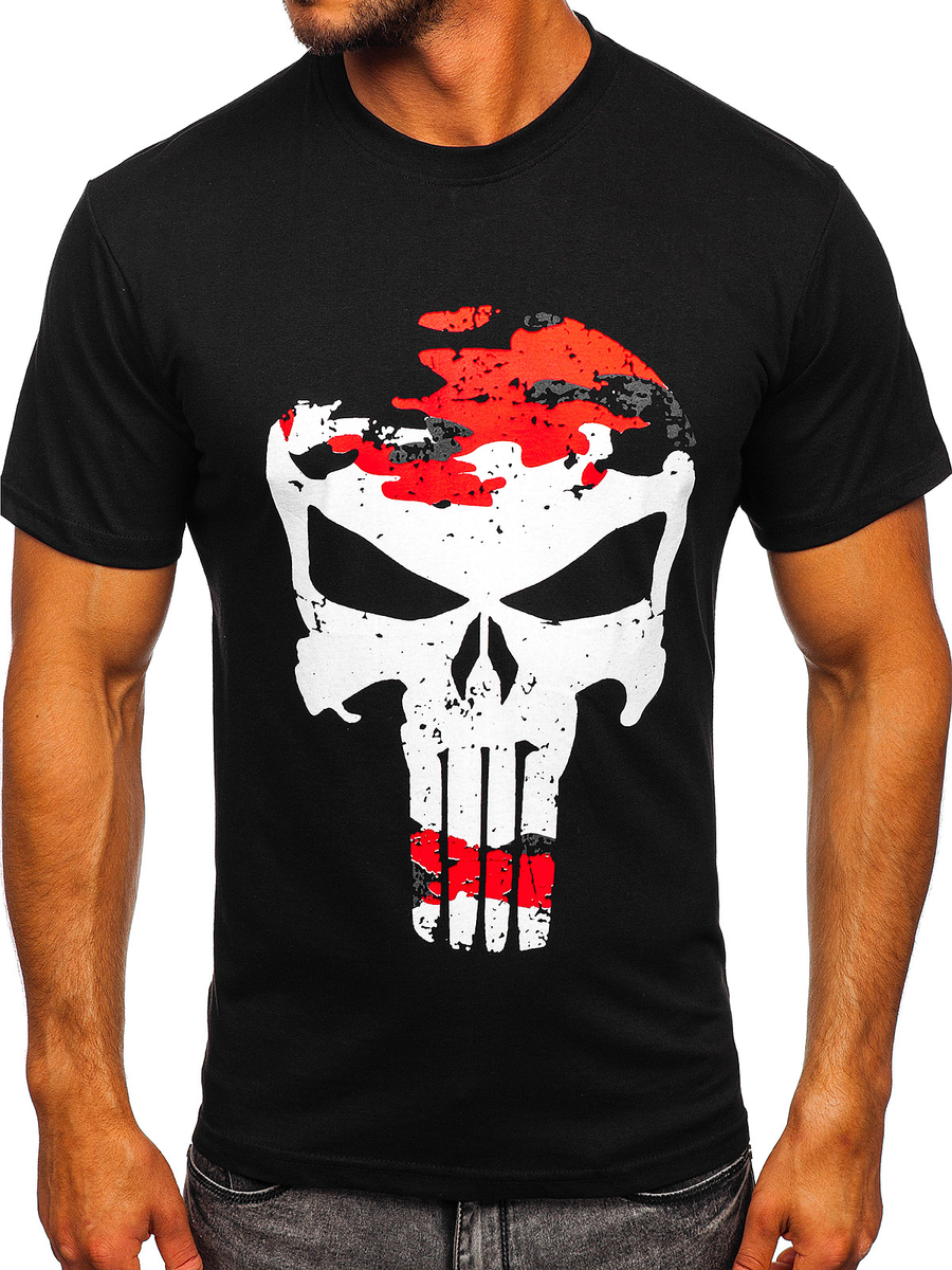 Tricoul cu imprimeu Bolf 2098 de culoare neagră-rosie are imprimeu mare . Are croiala clasică și decolteu rotunjit terminat cu dungă. La spate neted, negru
