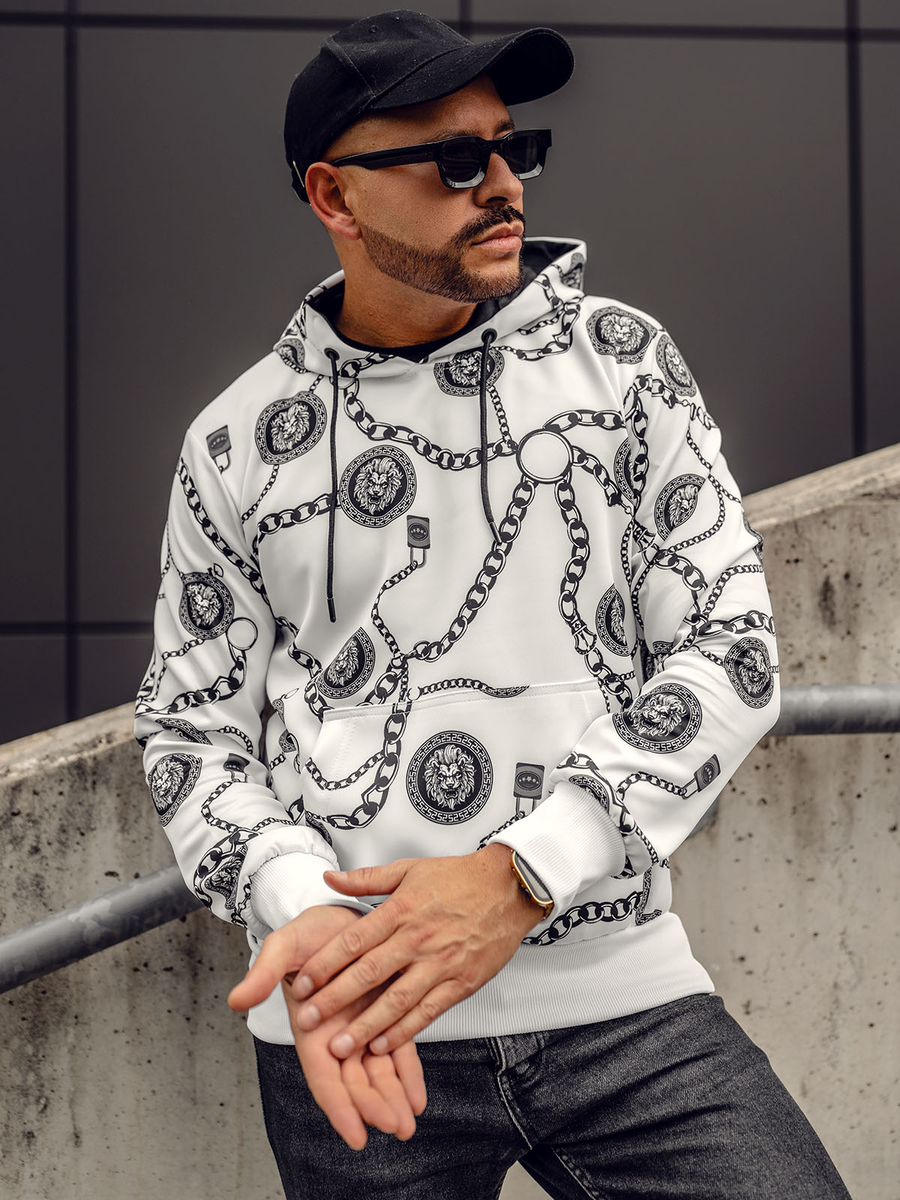 Hanoracul pentru bărbați Bolf HM336 este o combinație perfectă de stil și confort pentru bărbații care doresc să-și exprime personalitatea prin modă. Fabricat dintr-o combinație de bumbac și poliester, este moale la atingere și durabil. Imprimeul de designer adauga un caracter la moda, iar gluga ofera protectie impotriva inghetului si vantului. Manșeta elastică în partea de jos a hanoracului și pe mâneci asigură o potrivire perfectă la silueta. Combină cu blugi și adidași pentru un look casual, precum și un element al unei ținute sport pentru sală sau o plimbare.