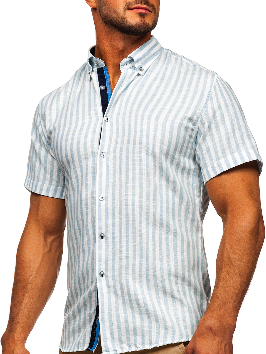 Opiniile utilizatorilor despre Cămașă în dungi albastru mâneca scurtă Bolf 211500