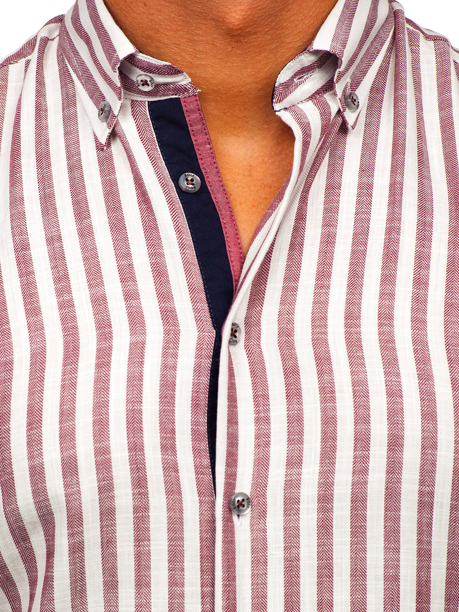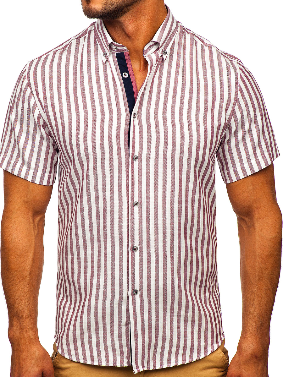 Opiniile utilizatorilor despre Cămașă în dungi bordo mâneca scurtă Bolf 211500