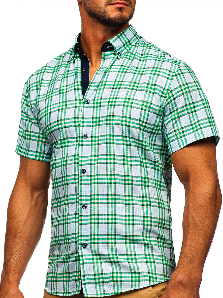 Opiniile utilizatorilor despre Cămașă in carouri verde mâneca scurtă Bolf 2101501
