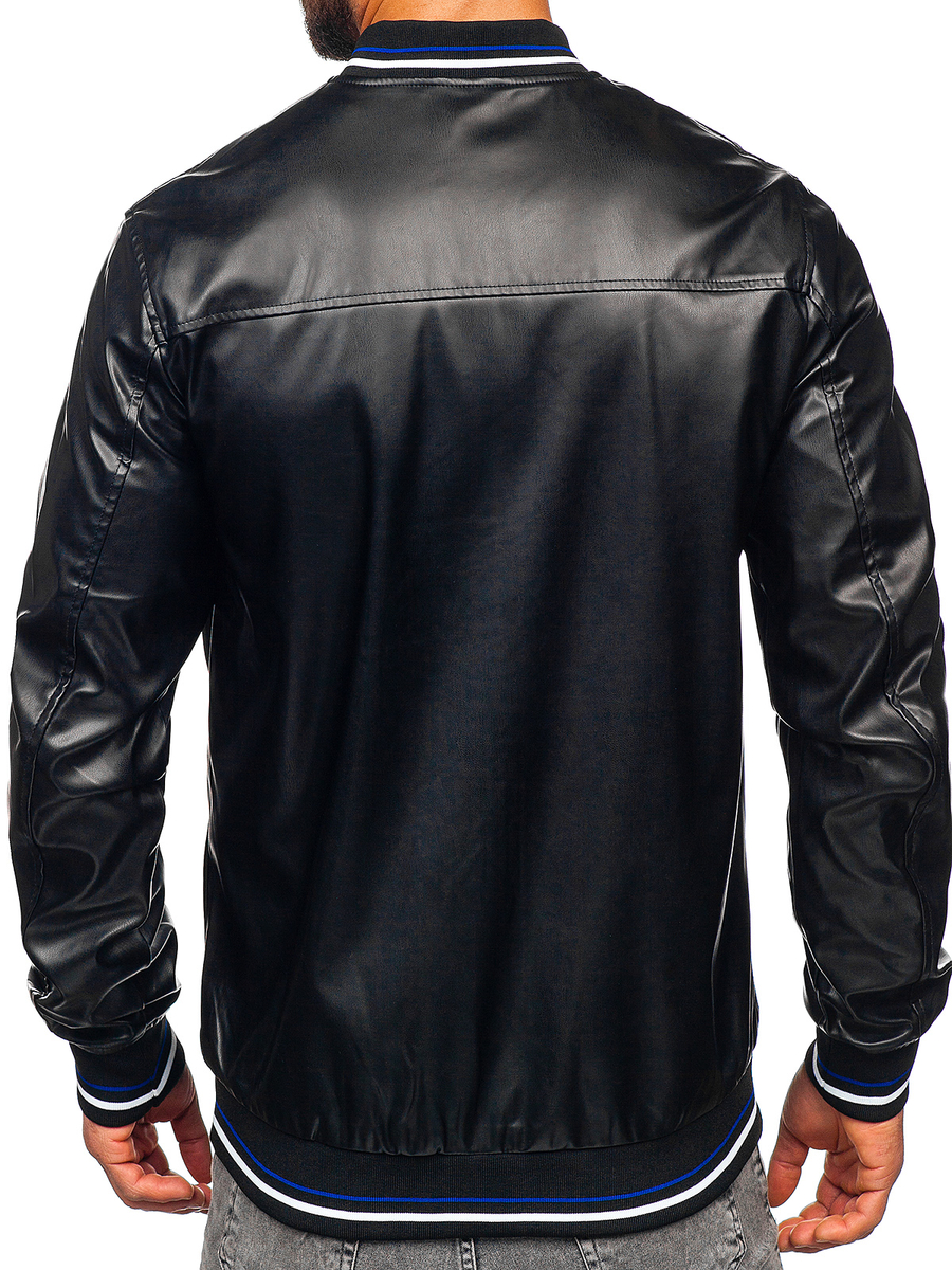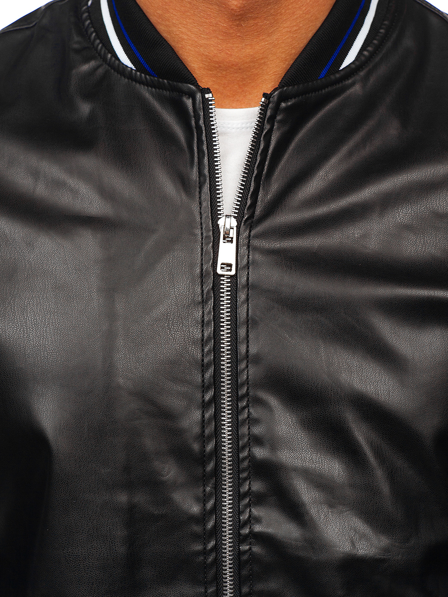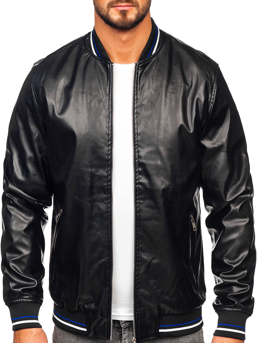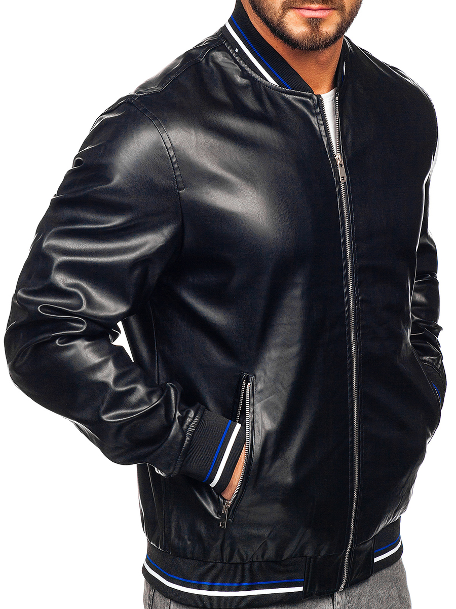 Geacă neagră de piele Bolf 6707 croiala clasică confecționată din piele ecologică. Geaca are fermoar strălucitor și guler tip tunică cu elastic. Are trei buzunare practice: două exterioar cu fermoar strălucitor și unul interior fără inchidere. Confecționată din 50%poliurethan si 50% poliester. Geaca neagră de piele are croiala universală stil casual, datorită acestui lucru se combină în diverse ținute. Creează o ținută perfectă. Va arăta excelent în combinare cu pantaloni joggers, blugi sau în ținutele mai libere cu pantaloni de training. Combină geaca cu bluză sau hanorac.