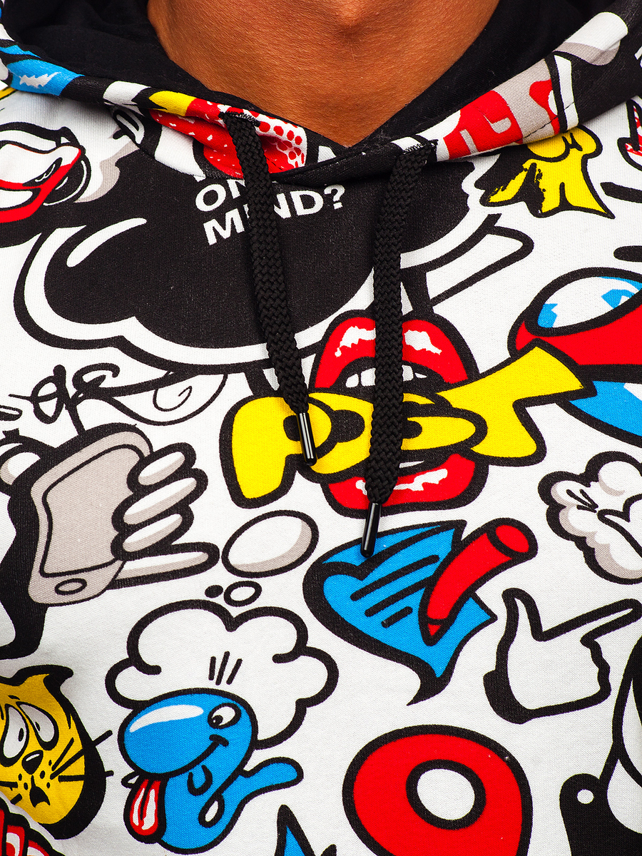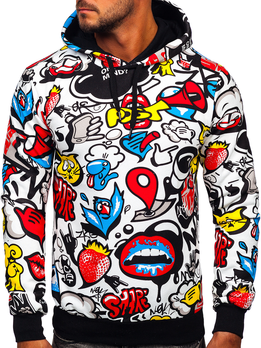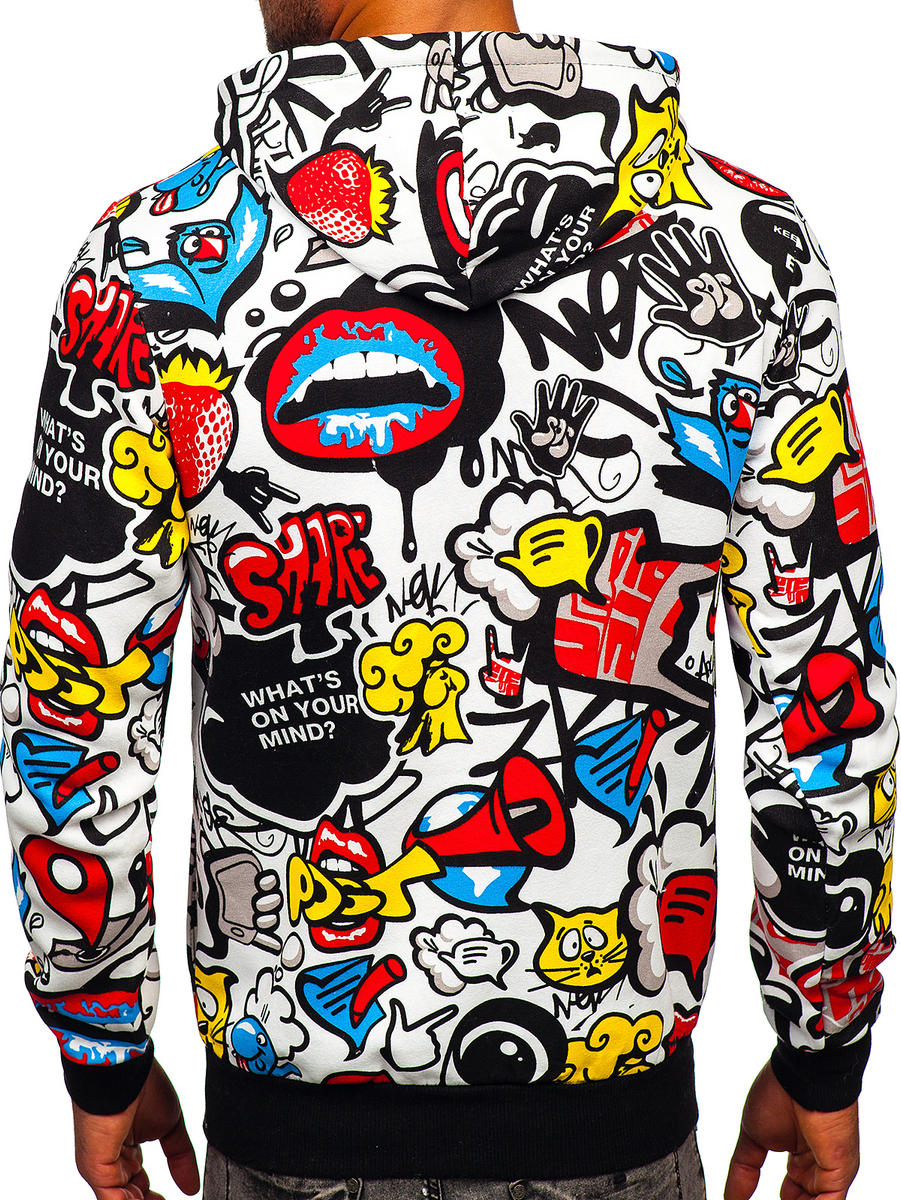 Hanorac multicolor cu imprimeu Bolf 141003 va fi o bază excelentă pentru ținutele zilnice. Are glugă reglabilă in două straturi și două buzunare laterale. Mânecile și finisarea cu elastic. Confecționată din 70% bumbac și 30% poliester. Acest model se evidențiază prin coloristica bogată. Este originală datorită imprimeului multicolor! Hanoracul se va potrivi pe orice anotimp la diverse ocazii: jogging, plimbare sau ieșire in oraș. Combină cupantaloni de traiming și geacă. Se combină excelent cu blugi,pantaloni cargo sau joggers.
