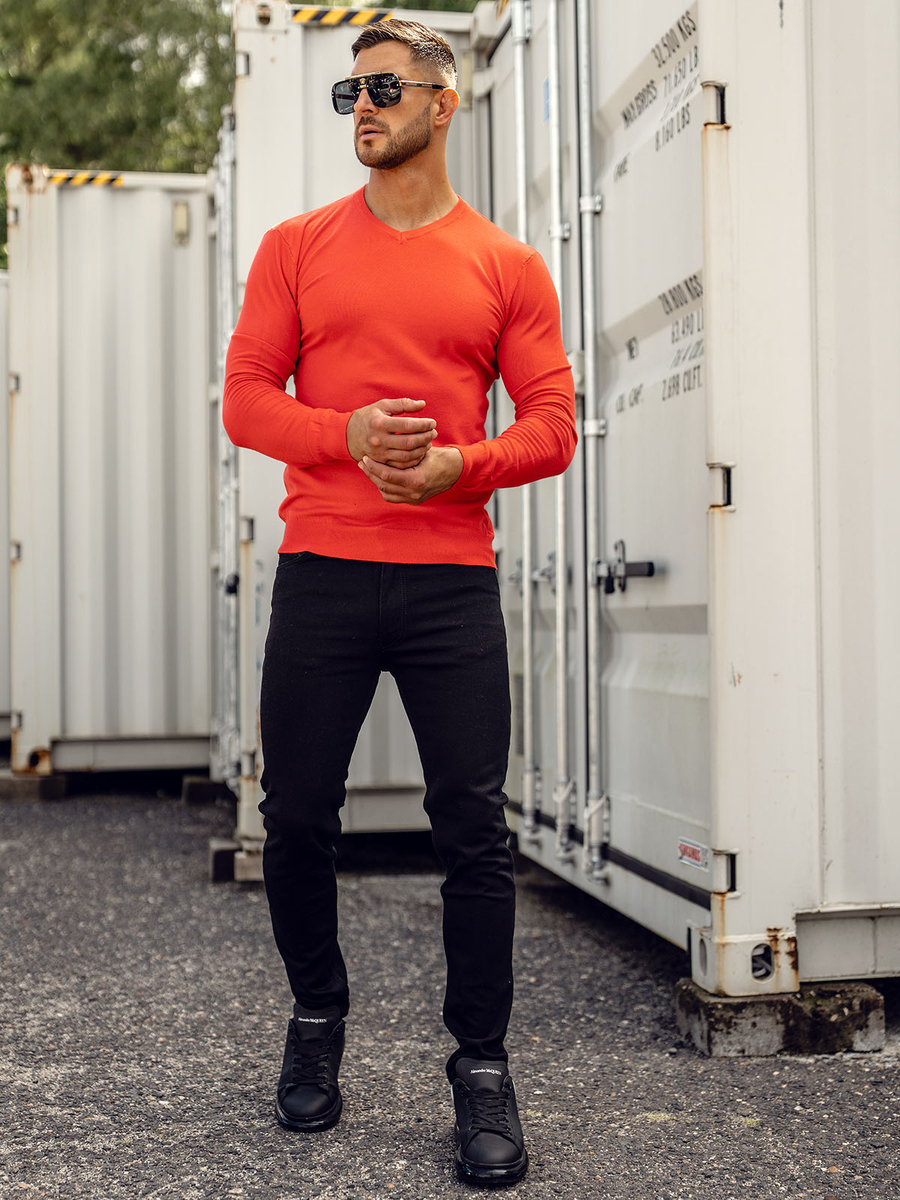 Puloverul portocaliu cu decolteu Bolf YY03, este un pulover croiala clasică. Are decolteu delicat finisat cu elastic. Mânecile la fel au fost finisate cu elastic, datorită acestui lucru se va așeza excelent pe fiecare siluetă. Confecționat din material moale plăcut la atingere, se așează excelent pe siluetă. Material 32% acril, 27% poliester, 23% nylon și 18% vascoză. Acest produs a fost confecționat în diverse variante coloristice se va combina în mai multe ținute. Poartă la școală, serviciu– datorită acestui lucru il poți combina în diverse ținute. Puloverul clasic arată excelent cu blugi și geacă de piele, creează un outfit ideal in oraș. Poți combina cu joggers și bluză, creează o ținută relaxată.