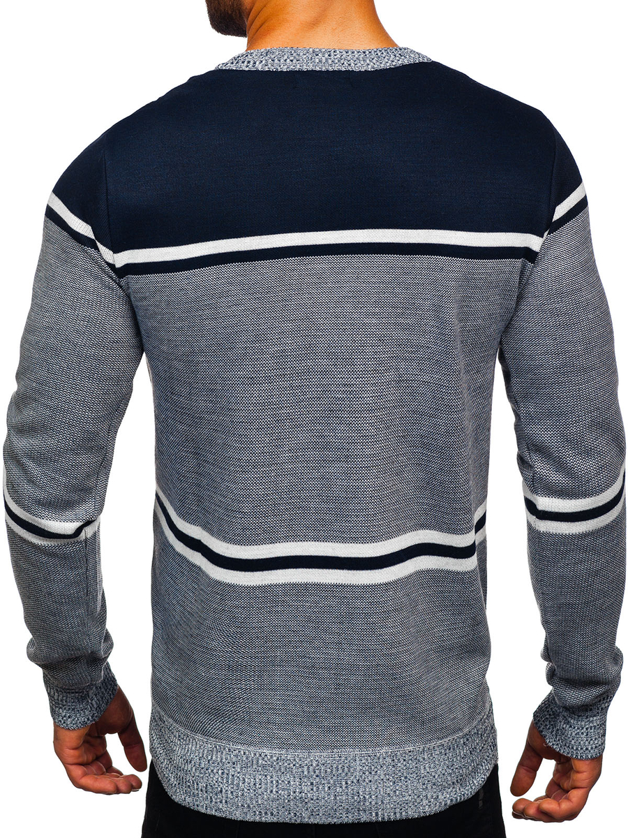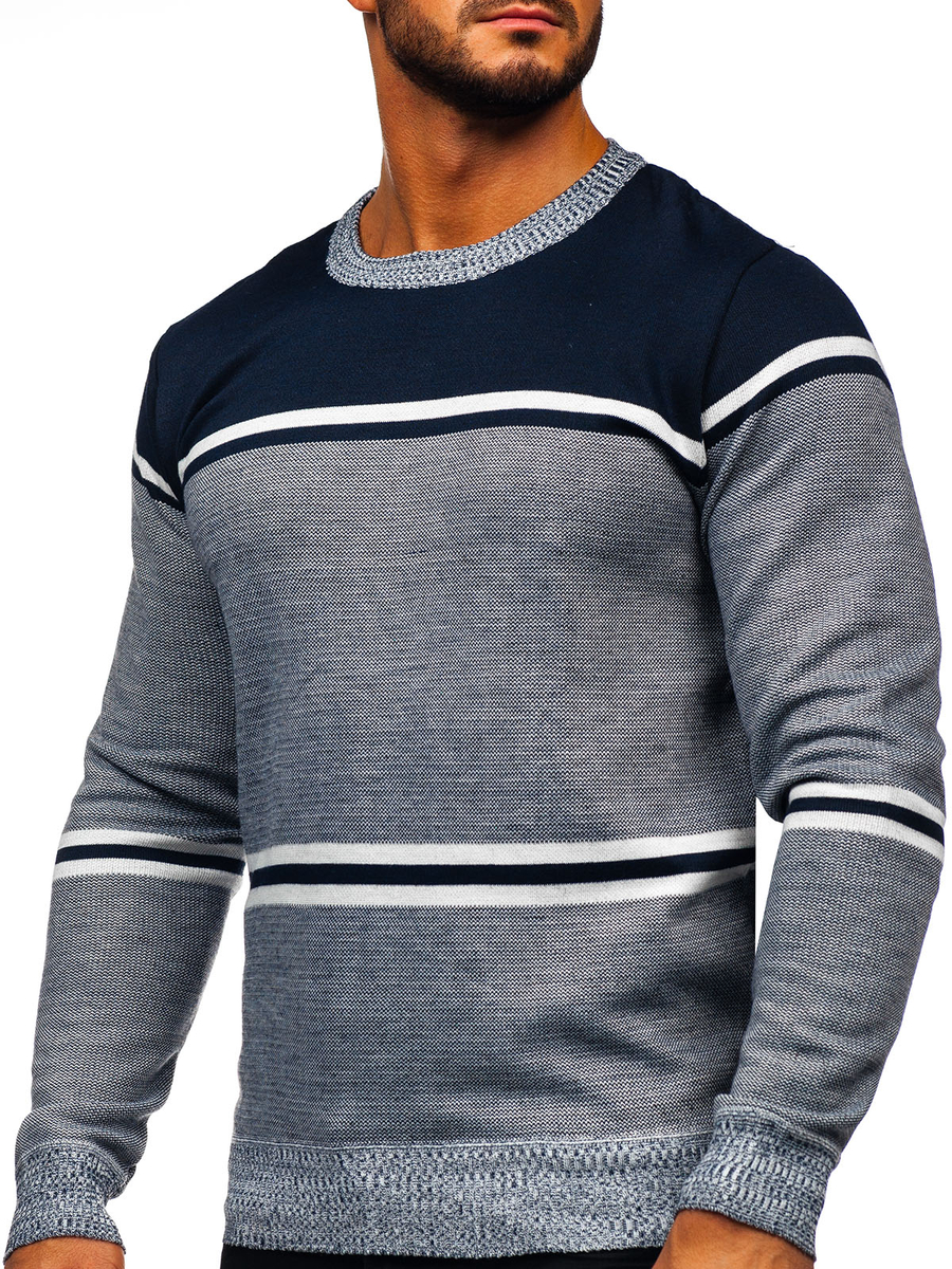 Puloverul bleumarin Bolf 6300, este un pulover tip casual. Produsul are decolteu rotunjit delicat finisat cu elastic. Mânecile finisate cu elastic, conferă caracter casual. Datorită acestui lucru puloverul se potrivește pe orice siluetă. Modelul se va potrivi pentru orice persoană, va arăta excelent. Dungile stilate conferă caracter. Confecționat din material moale plăcut la atingere, se așează excelent pe siluetă. Materialul 65% lână, 30% acril 5% elastan. Îmbracă la serviciu, școală, film sau intalnire – indiferent de ocazie vei arăta excelent mereu. Puloverul clasic arată excelent cu blugi și geacă de piele, creează un outfit ideal in oraș. Poartă cu joggers și bluză, creează o ținută relaxată.