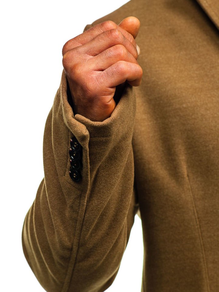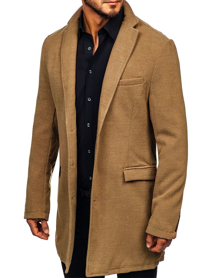 Paltonul de iarnă camel Bolf 1047 este un palton tip chesterfield. Va fi ideal în zilele reci de iarnă, are căptușeala cu blană și confecționat din material gros. Paltonul are închidere cu nasturi, guler clasic și butoniera la piept. Două buzunare cu patch și doua cu închidere la nasture. Nasturii și terminația mânecilor conferă caracter.