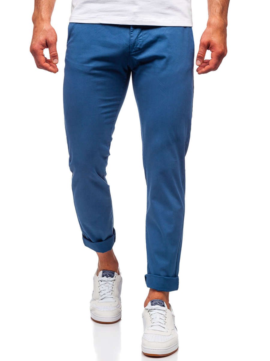 Pantaloni chinos indigo Bolf 1146 sunt un model pentru bărbații ce prețuiesc confortul și stilul. Acest model clasic de pantaloni trebuie să se regăsească în garderoba fiecărui bărbat. Acest model este confecționat în cateva culori clasice, datorită cărora îl poți combina cu multe culori și modele. Caracteristic pentru acest model sunt manșetele la terminația picioarelor, care conferă stil pantalonilor.