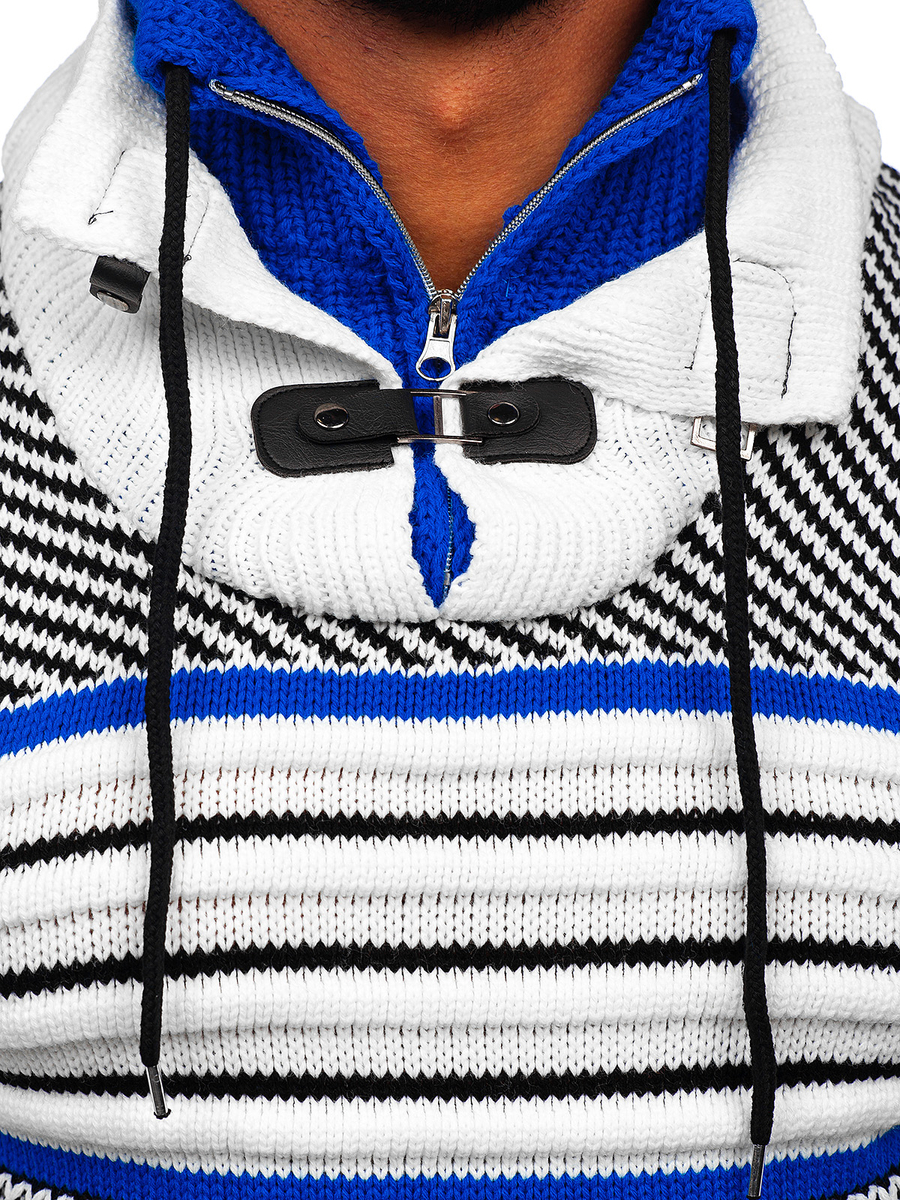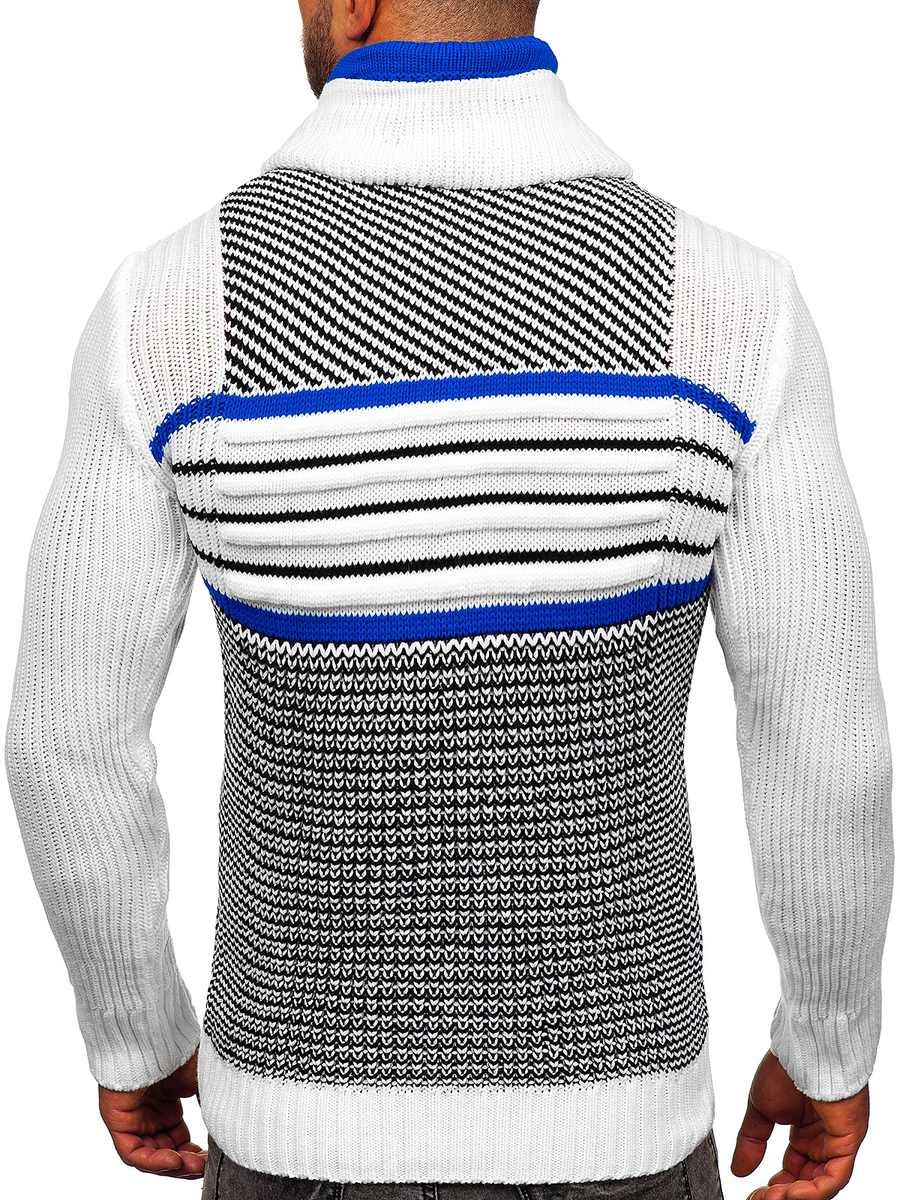 Pulover alb gros Bolf 2000 un model pentru zilele reci. Are guler original cu reglare la fermoar, șnur și nasturi. Finisarea și mânecile cu elastic. Datorită elasticelor puloverul se va potrivi ideal pe fiecare siluetă. Modelul se va potrivi pentru orice persoană, va arăta excelent. Confecționat din material moale plăcut la atingere, se așează excelent pe siluetă. Material 70% acril și 30% lână. Modelul conferă originalitate. Puloverul clasic se va combina cu blugi si geacă de piele. Combină cu joggers si bluză, obține un stil relaxat.