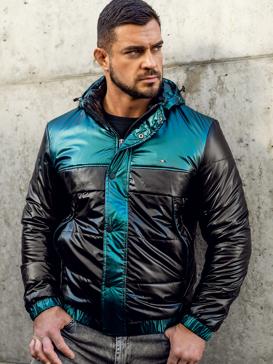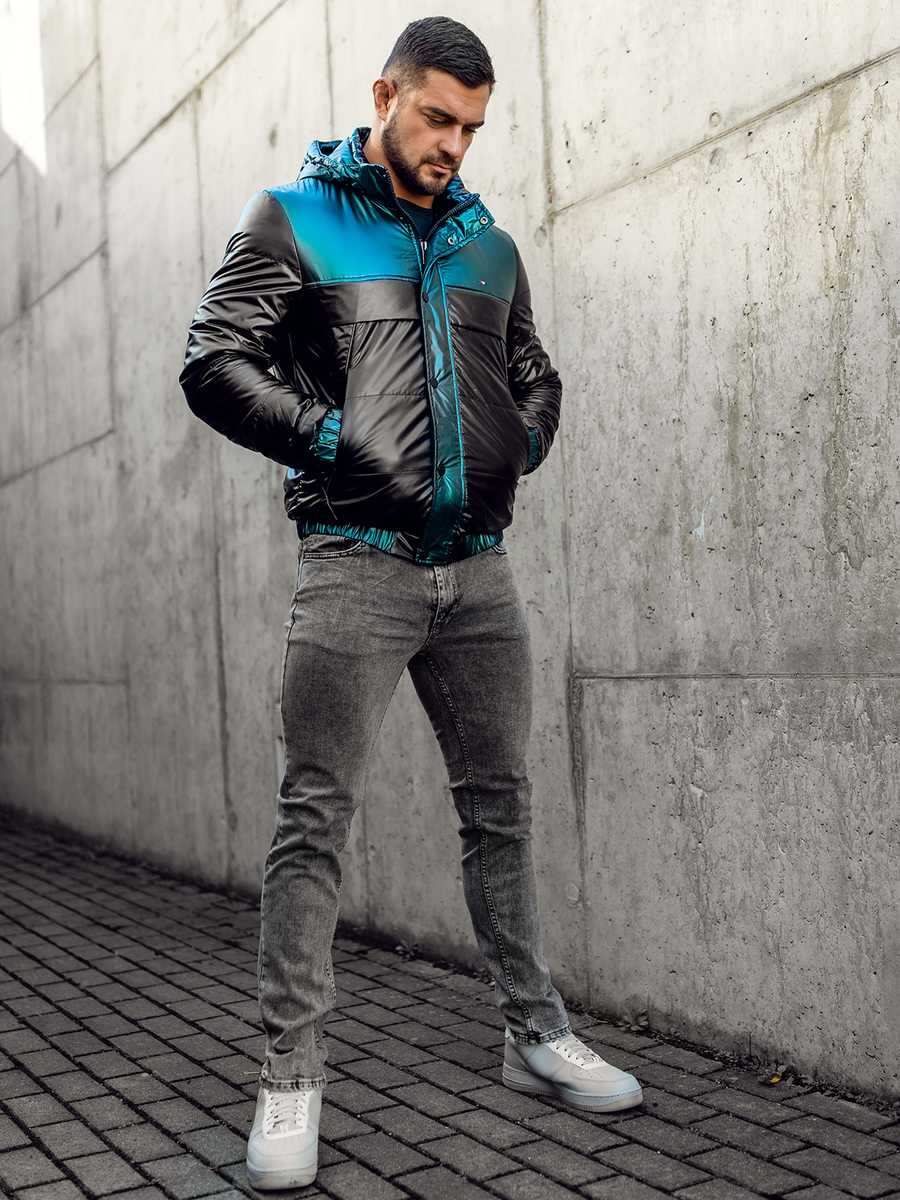 - Geaca matlasată cu închidere la fermoar strălucitor și nasturi metalici
