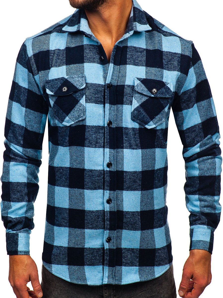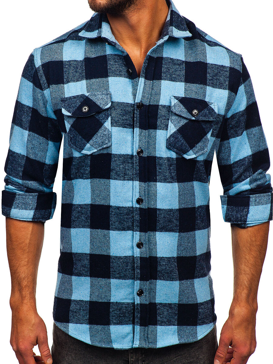 Opiniile utilizatorilor despre Cămașă albastru-aprins flanel cu mâneca lungă Bolf 20723