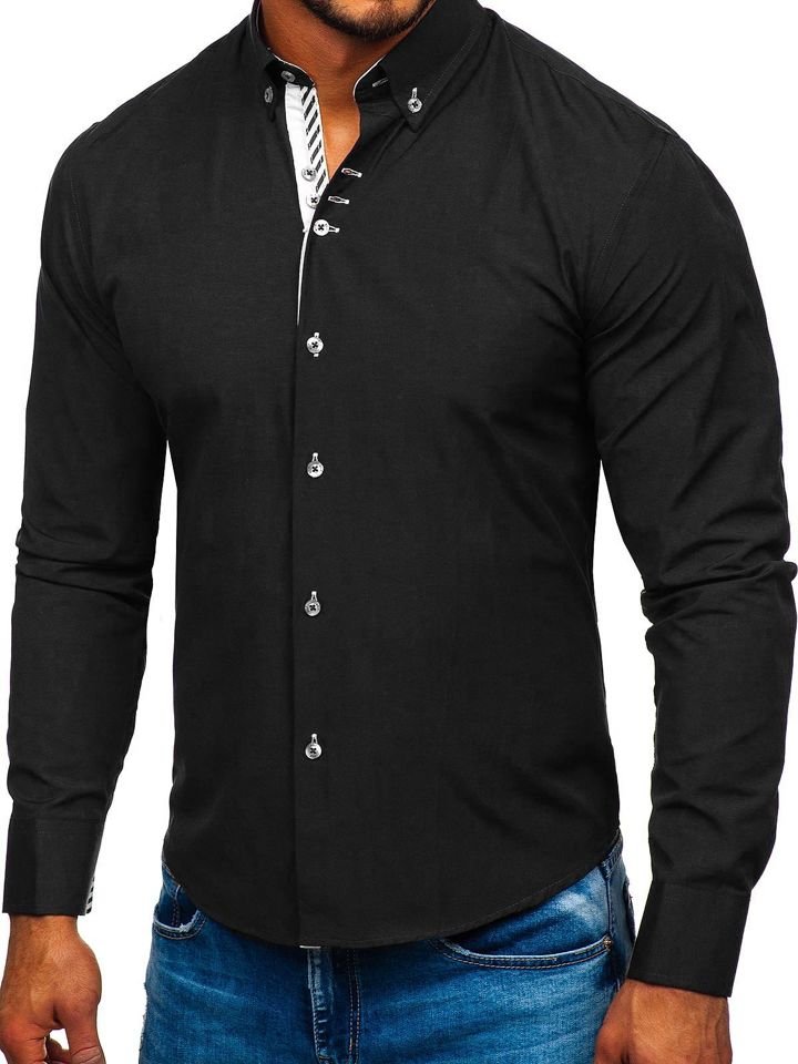 Cămăși negre elegante, pentru bărbat din colecția Bolf. Se așează excelent pe silueta masculină. Cămașa slim fit evidențiază puternic ținuta cu blugi. Cămașa neagră se prezintă elegant în combinare cu pantaloni chino și sacou.