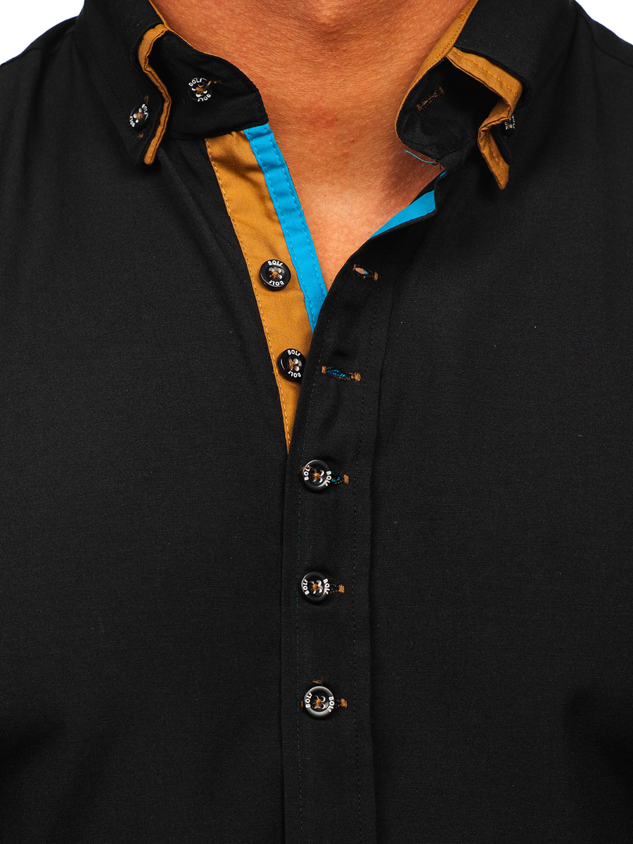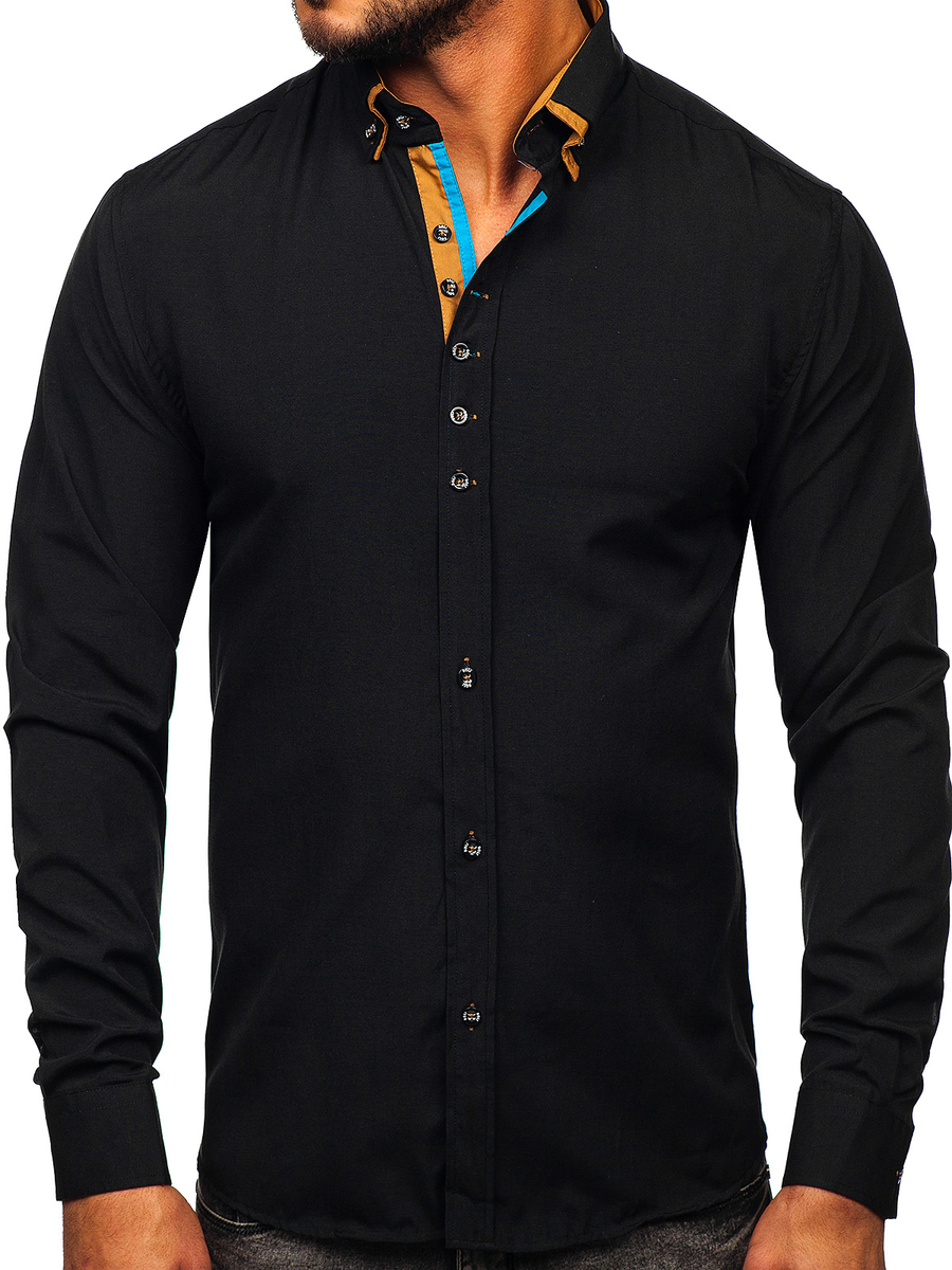 Cămăși negre stilate pentru bărbat Bolfsunt o bază excelentă și un model efectiv în outfit-urile zilnice. Se așează excelent, se poartă minunat, negrul luminează inserțiile colorate. Cămașa neagră cu mâneca lungă slim fit se potrivește bine cu jeanși și pulover Poartă cu sacou sau geacă.