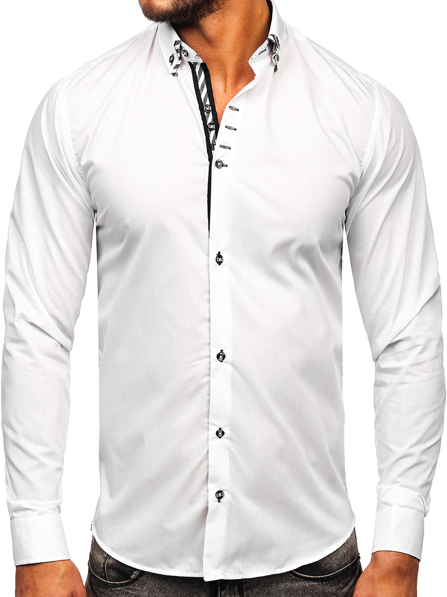Cămăși albe minunate cu mâneca lungă slim fit Bolf. Conferă putere ținutelor, arată excelent în pereche cu jeanși sau pantaloni bej. Cămașa alba pentru bărbat are guler interesant și închidere frumoasă. O poți îmbrăca de asemenea sub sacou.