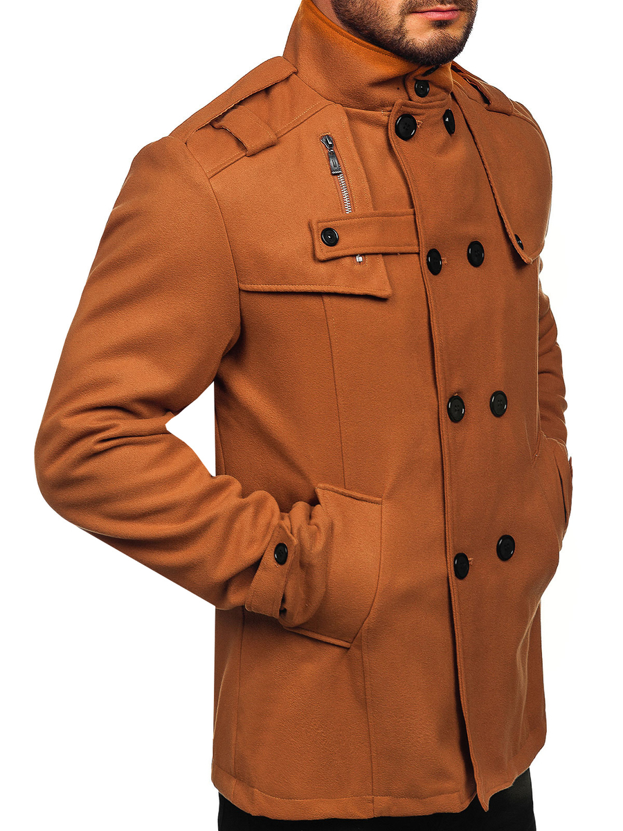 Paltoane pentru bărbat în două rânduri de nasturi gri, stilate de la Bolf. Au epoleți military, buzunare practice, guler înalt și evidențiază fantastic silueta masculină. Paltonul gri pentru bărbat se combină excelent în stilizările libere zilnice, se potrivesc de asemenea în seturile elegante.