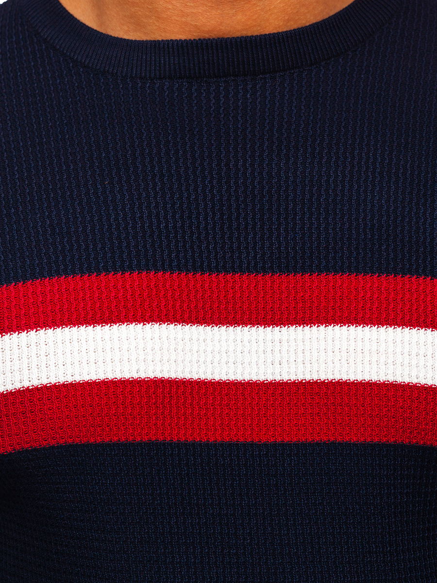 Puloverul bleumarin Bolf H2113 este un element universal în ținutele masculine. Disponibil in diverse variante coloristice. Puloverul are croiala simplă se va potrivi excelent pe siluetă Confecționat din60% acril, 30% lână și 10% elastan, datorită acestui lucru este foarte plăcut la atingere și comod. Are dungi originale din materiale combinate, ceea ce conferă un stil casual. Poți purta la diverse ocazii. Se va potrivi excelent in ținutele sport pentru bărbații activi. Combină la intalnirile cu prietenii cu blugi, bluză cu fermoar sau de asemenea geacă de blugi.